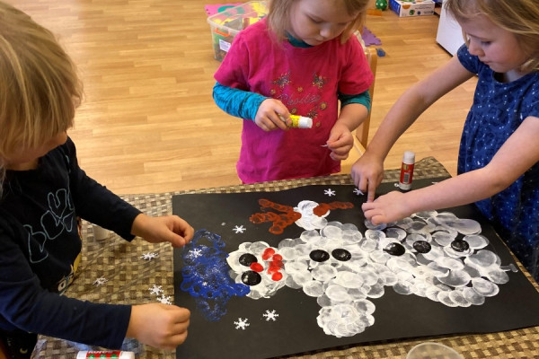 První týden v novém roce jsme zahájili tématem Tři králové. Děti se dozvěděly, jaké tradice a příběh se pojí se třemi králi, a na toto téma si zkusily i řadu činností (skupinové vybarvování omalovánky Tří králů; navlékání korálků na vousy atd.). Dále jsme odstrojili vánoční stromeček a užívali si čerstvě napadaný sníh - nechali jsme se skibusem vyvézt do Janských Lázní a pešky jsme došli (či dojeli na kluzácích) zase zpět do školky.