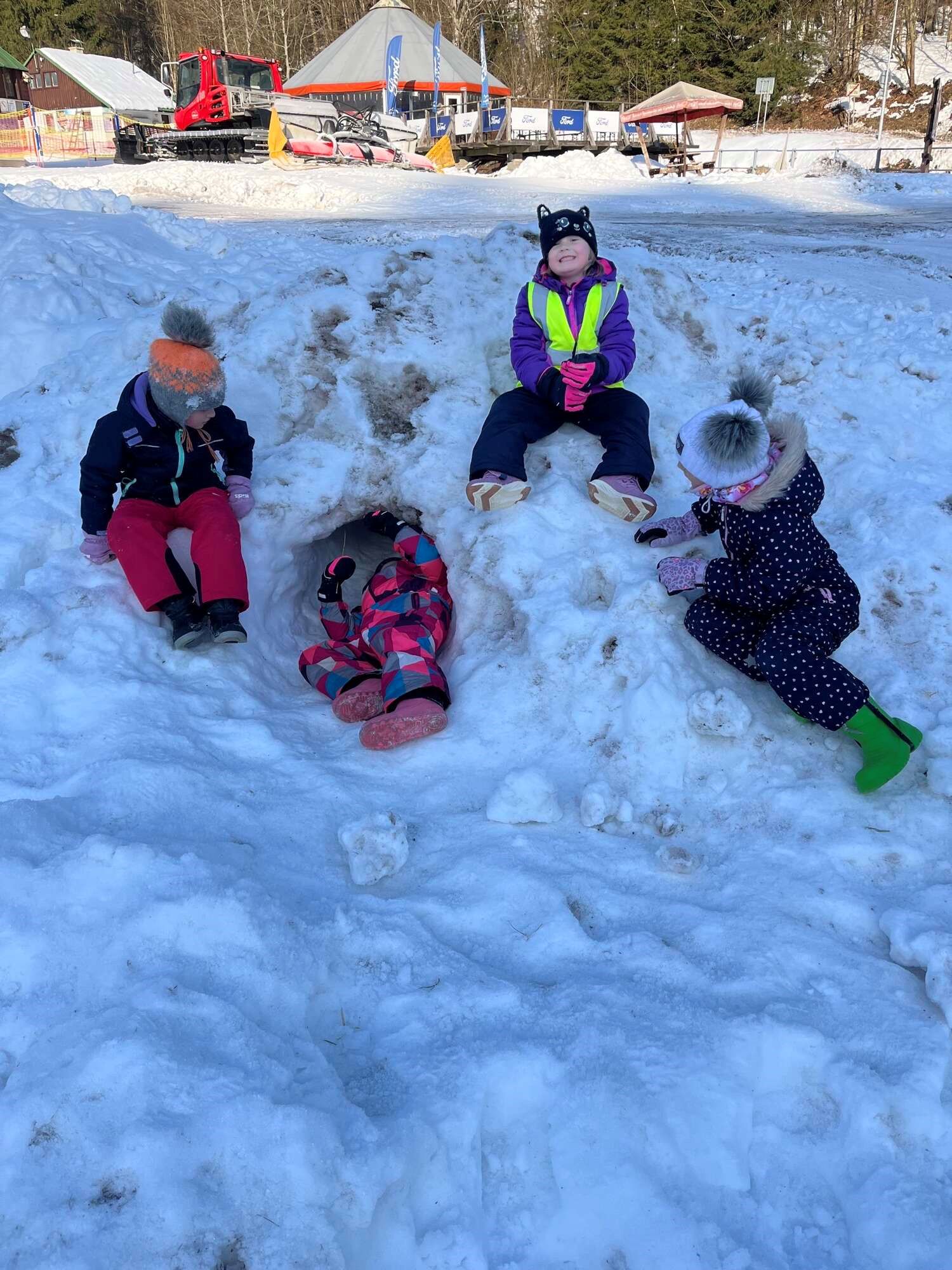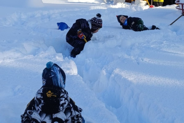 Třetí týden nás doprovázeli ptáčci v zimě. Děti zjistily, kteří ptáčci u nás v zimě zůstávají, a ty jsme poté hledali venku v přírodě a v krmítcích. Dále se děti naučily písničku Bude zima, bude mráz a zahrály si hudební hru s nástroji. Jelikož nám počasí přálo, jeli jsme na sjezdovku Duncan, kde měly děti možnost sjíždět sjezdovku na kluzácích nebo si pohrát ve sněžném iglú.