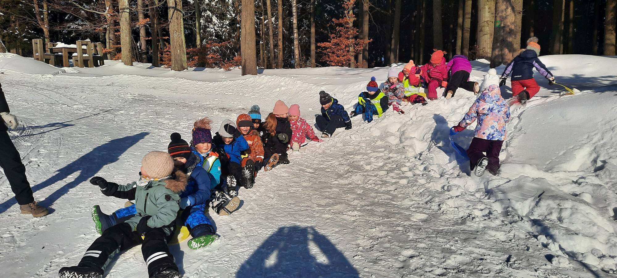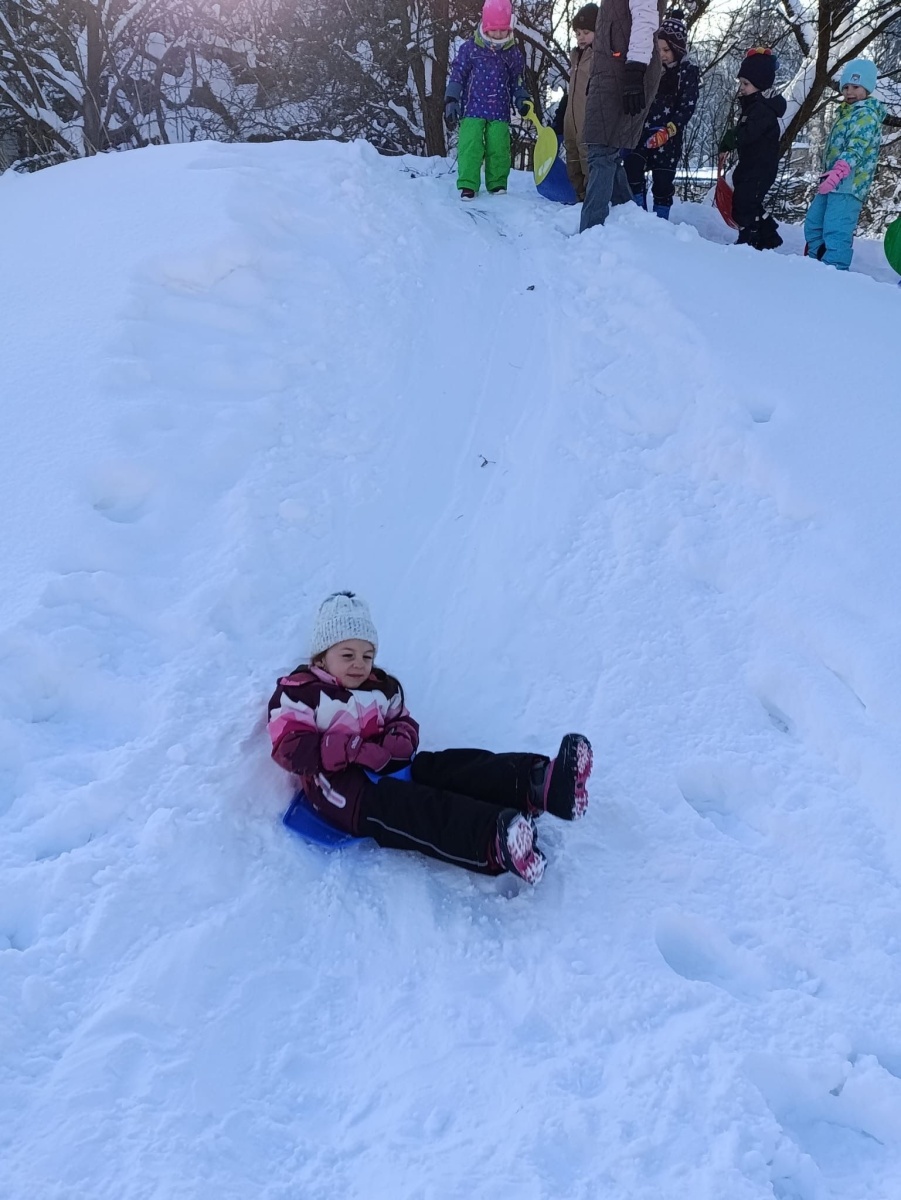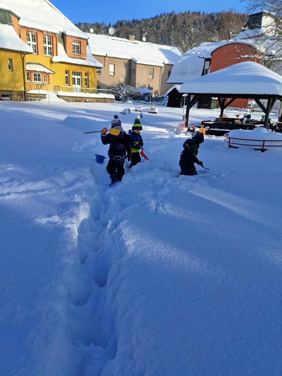 6. ledna k nám do školky zavítala Tříkrálová sbírka, která dětem zazpívala. Každý kamarád hodil do kasičky minci. Pravá zima na sebe nenechala dlouho čekat, a tak jsme si mohli užívat zimní radovánky - stavěli jsme sněhuláky, jezdili jsme na běžkách, dělali jsme andělíčky v hlubokém sněhu, jezdili jsme na podsedácích, koulovali jsme se a školní plot jsme ozdobili zmrzlými obrazy.