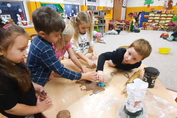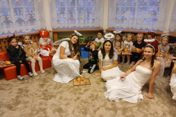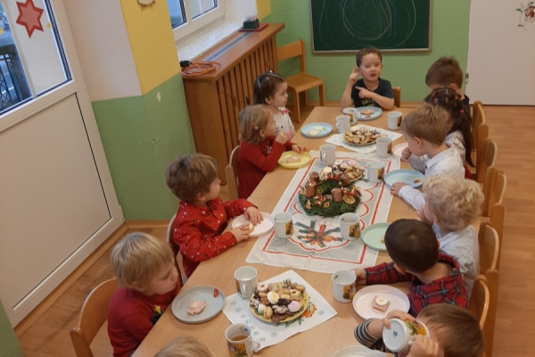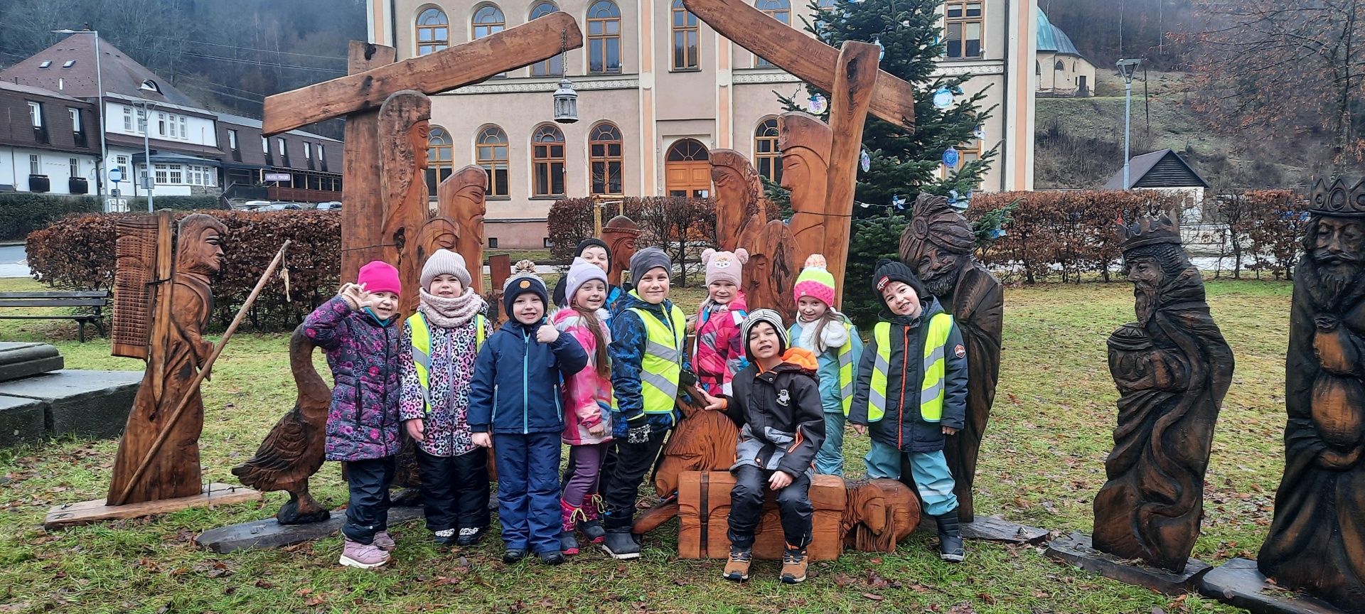 Další týdny jsme věnovali Vánocům a tradicím s nimi spojenými, jeli jsme vláčkem do Trutnova, prošli si vyzdobené Krakonošovo náměstí a navštívili výstavu betlémů, v tělocvičně základní školy jsme měli písničkový pořad s tanečky, pro rodiče jsme uspořádali společné vánoční tvoření.