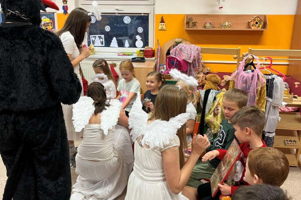 První týden byl plný tvoření andílků, čertíků a Mikuláše. A ke konci týdne nás Mikuláš se svojí početnou družinou poctil návštěvou. Děti společně zazpívaly písničku a byly odměněny za svoji odvahu dobrotou.