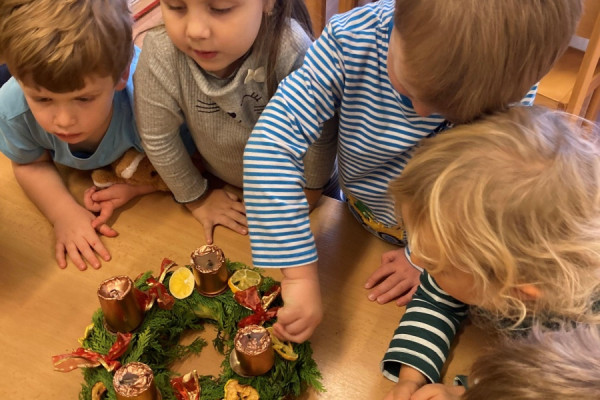 Další dny už jsme se věnovali adventu, tradicím, pekli jsme cukroví, zdobili stromeček, vyráběli vánoční přání nebo jsme navštívili již tradičně pana Kapuciána a jeho krásný dřevěný betlém.