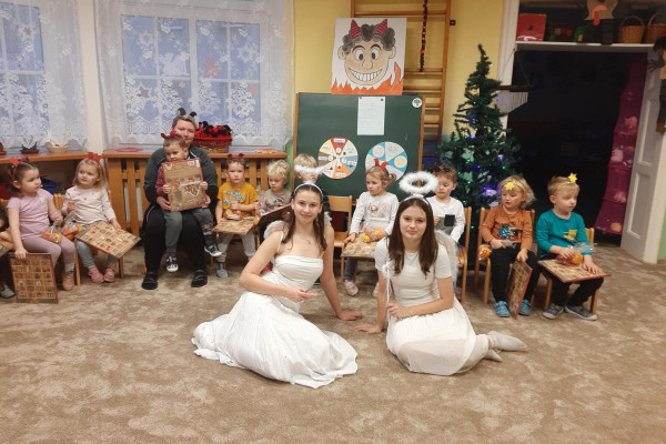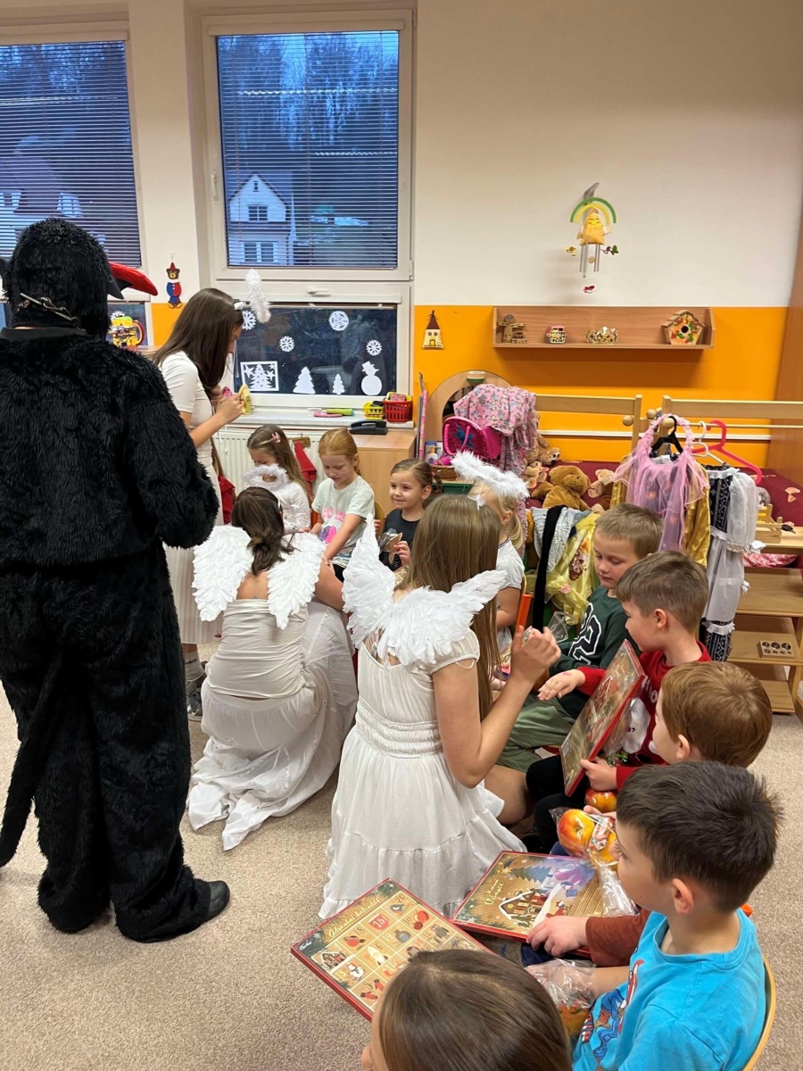 Hned na začátku prosince nás navštívila parta pekelníků, samozřejmě i s Mikulášem a andílky, přímo ve třídě. Děti byly statečné, zazpívaly písničky nebo přednesly básničky a dostaly nadílku. Čerti byli jako každý rok shovívaví a nikdo neskončil v pytli, nebo snad dokonce v peklíčku.