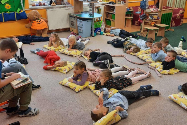 Naše třída Medvídků se také zapojila do akce Děti čtou dětem, kdy chodí žáci z různých tříd číst našim předškolákům pohádky.