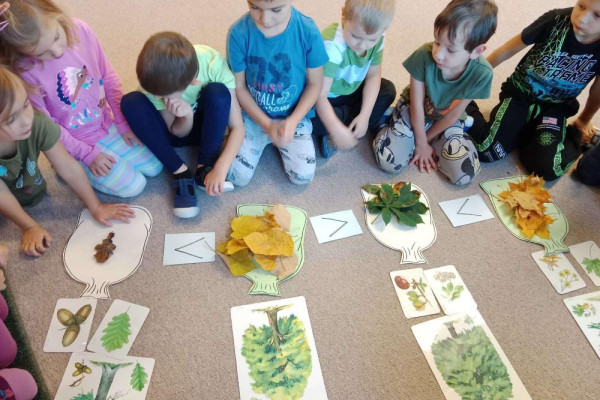 V dalším týdnu se děti seznámily s listnatými a jehličnatými stromy a jejich plody. Děti se je naučily rozpoznávat a vědět, které stromy na zimu opadávají a které ne. V tomto týdnu jsme s dětmi hodně chodili do přírody a jednotlivé stromy a jejich plody jsme se snažili najít.