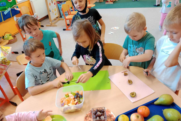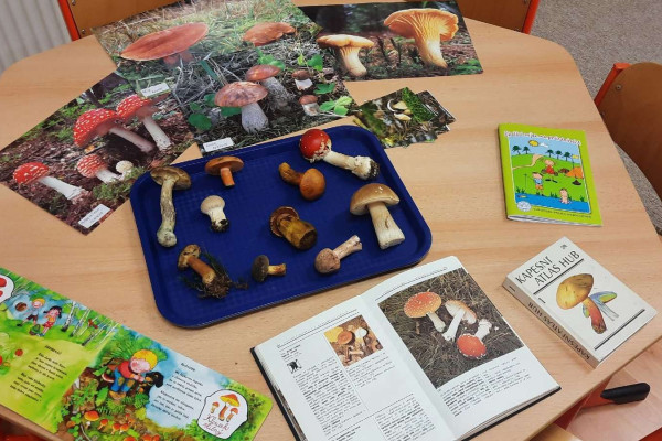 Měsíc říjen jsme odstartovali poznáváním ovoce všemi smysly. Připravili jsme si ovocný salát nebo nasušili křížaly na zimu. Protože počasí venku bylo "na houby", houbám jsme se věnovali i uvnitř. Naučili jsme se rozeznávat houby jedlé i jedovaté, vydali jsme se i do lesa nějaké nasbírat.