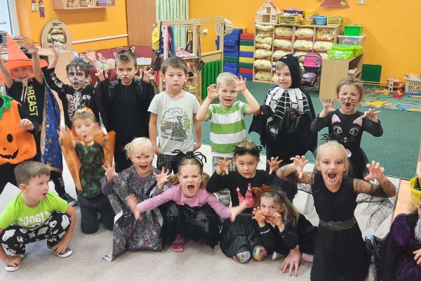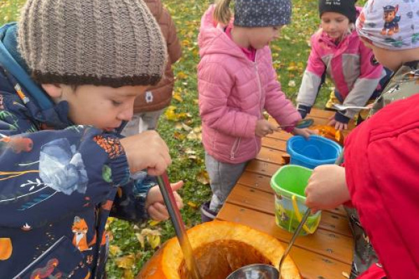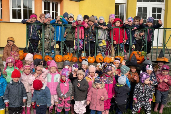 V tomto měsíci jsme poznávali podzim a vše, co k němu patří – ovoce, zeleninu, změny v přírodě, barevné listí a dýně, které jsme si i vydlabali a vyrobili z papíru. Děti si dýňování užily i ve veselých kostýmech. Všechny vydlabané dýně zdobí v Janských Lázních Stezku korunami stromů, kam jsme si udělali výlet o podzimních prázdninách.