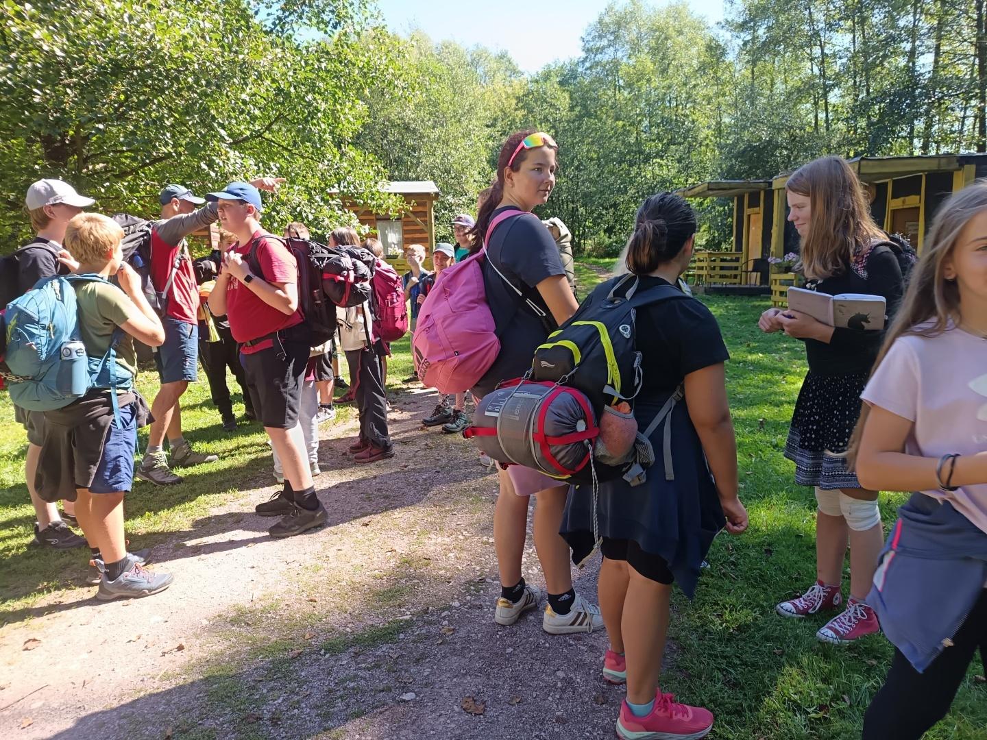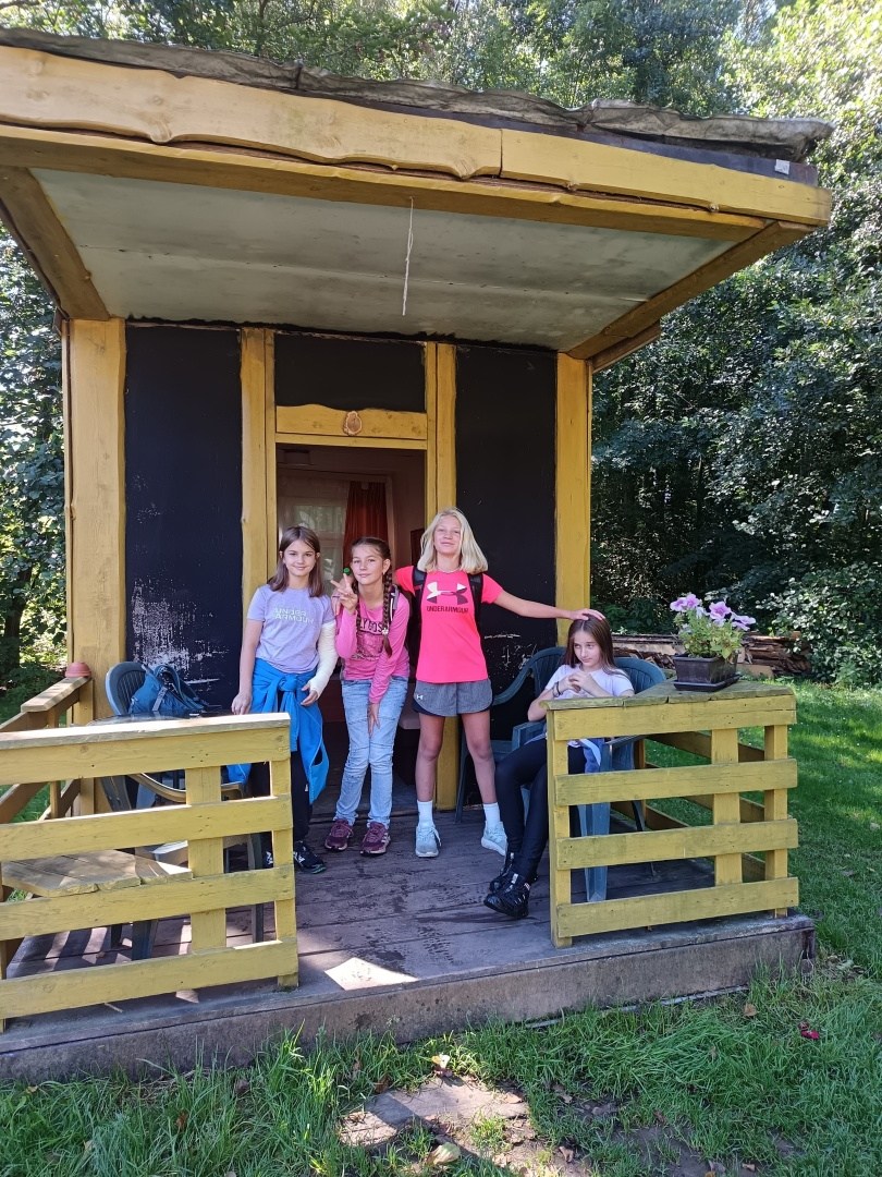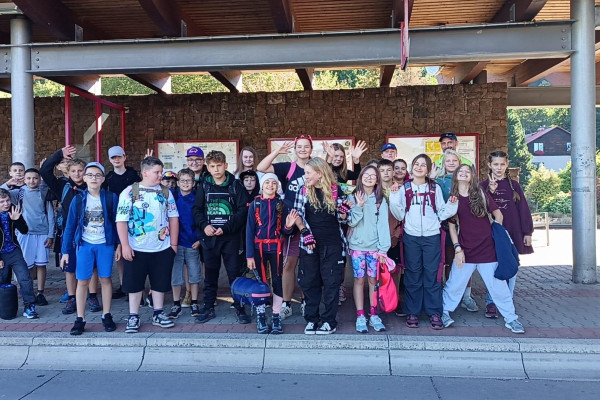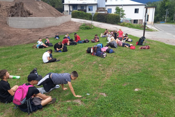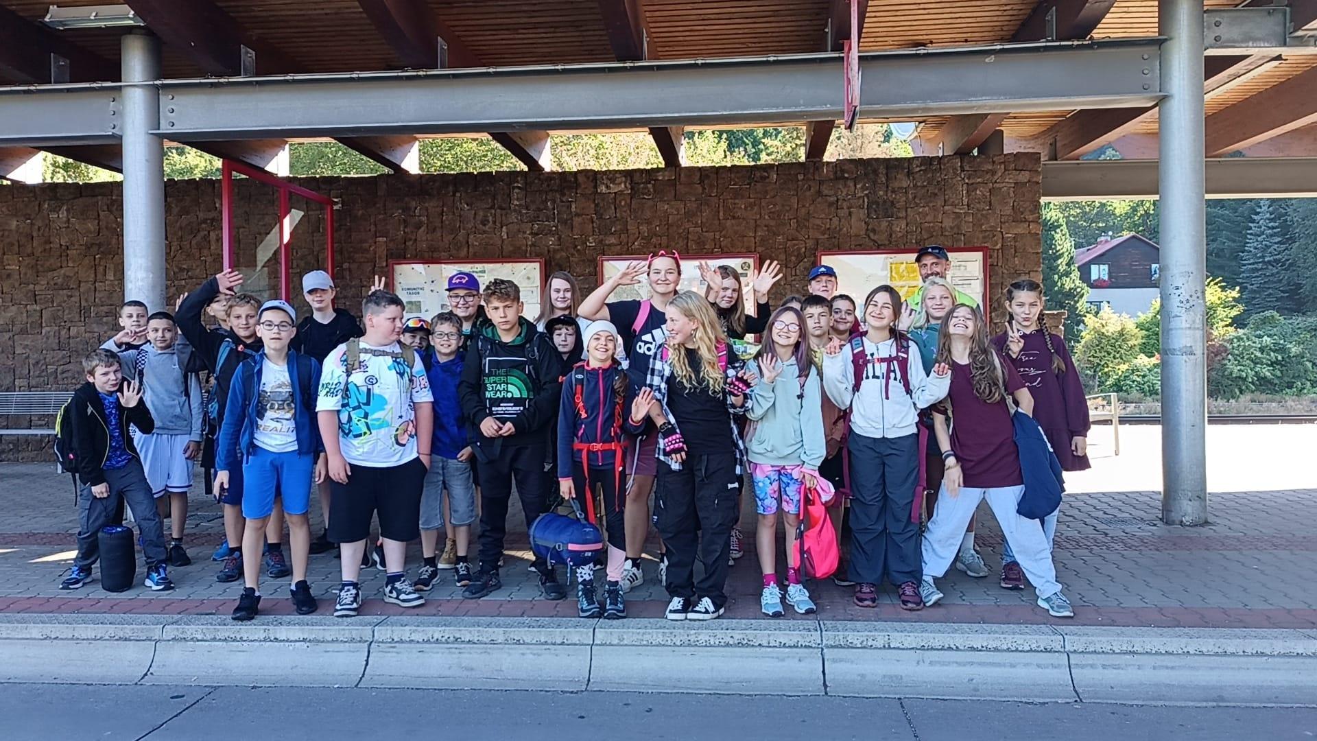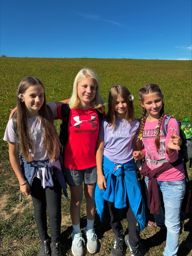 Tři dny ve škole, dva v přírodě, tak měl v novém školním roce vypadat první týden čerstvých šesťáků. I stalo se, původní plán vyšel, ve čtvrtek jsme vyrazili. A bylo nás… hodně. Zaplnili jsme celý autobus vyrážející ze Svobody směrem na Černý Důl. Naší konečnou byla zastávka v Čisté u školy, aby ten ranní start nebyl pro děti tak výrazným šokem. Do kempu to pak odsud bylo stejně daleko jako z mořské hladiny k vraku Titanicu. Počasí nám přálo, modrá část slunečního světla se na molekulách plynných složek atmosféry nádherně rozptylovala. Zvolená trasa v mapě hezky měnila křivost, nešlo odolat. A tak ve společnosti vznášejících se křídel otakárků děti na pouti stezkou sv. Michala statečně zdolávaly jeden inflexní bod za druhým, nedbajíc při tom nad hlavami prolétávajících kusů vápence. Aniž bychom si šáhli na dno, před polednem jsme v pohodě, mentální i fyzické, dorazili do cíle. Následoval krátký odpočinek, ubytování ve čtyřlůžkových chatkách a oběd. Po něm měly děti chvíli pro sebe. Využily ji pro hry a osnování plánů na večer. To vše za zvuků bangerů od pro mě zcela neznámých interpretů.