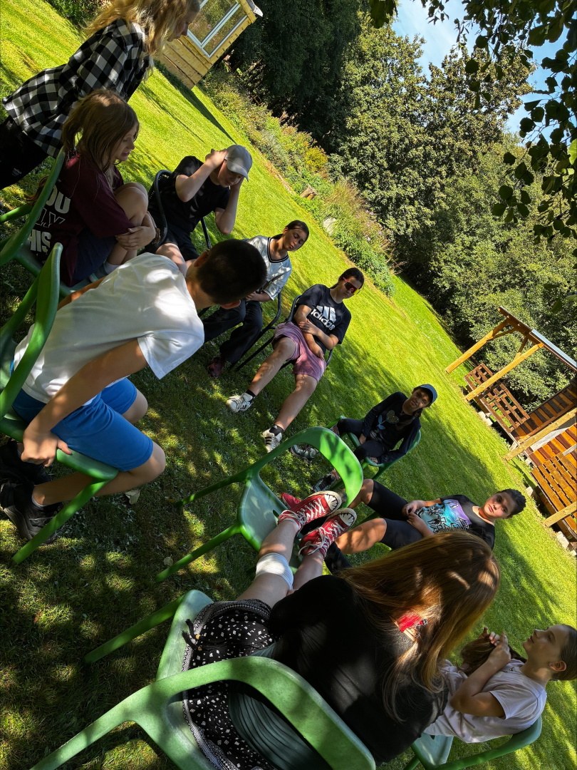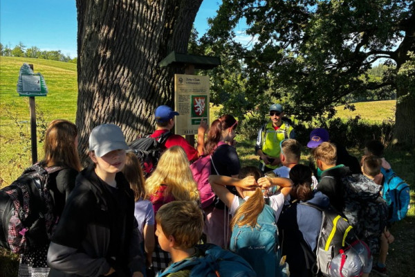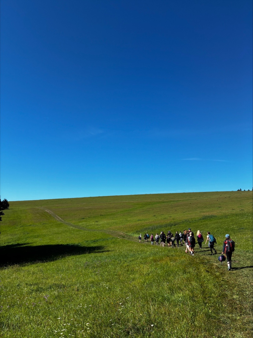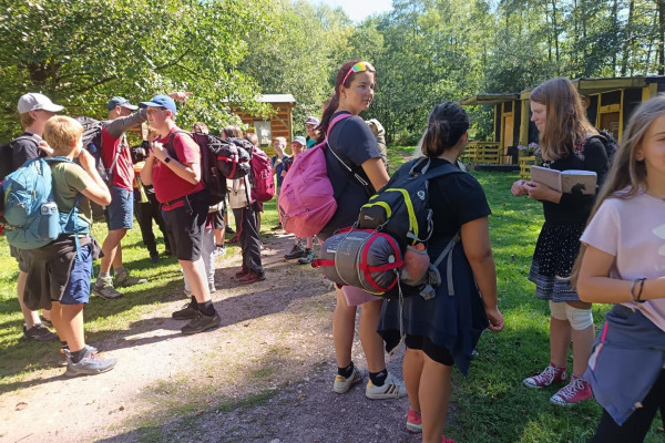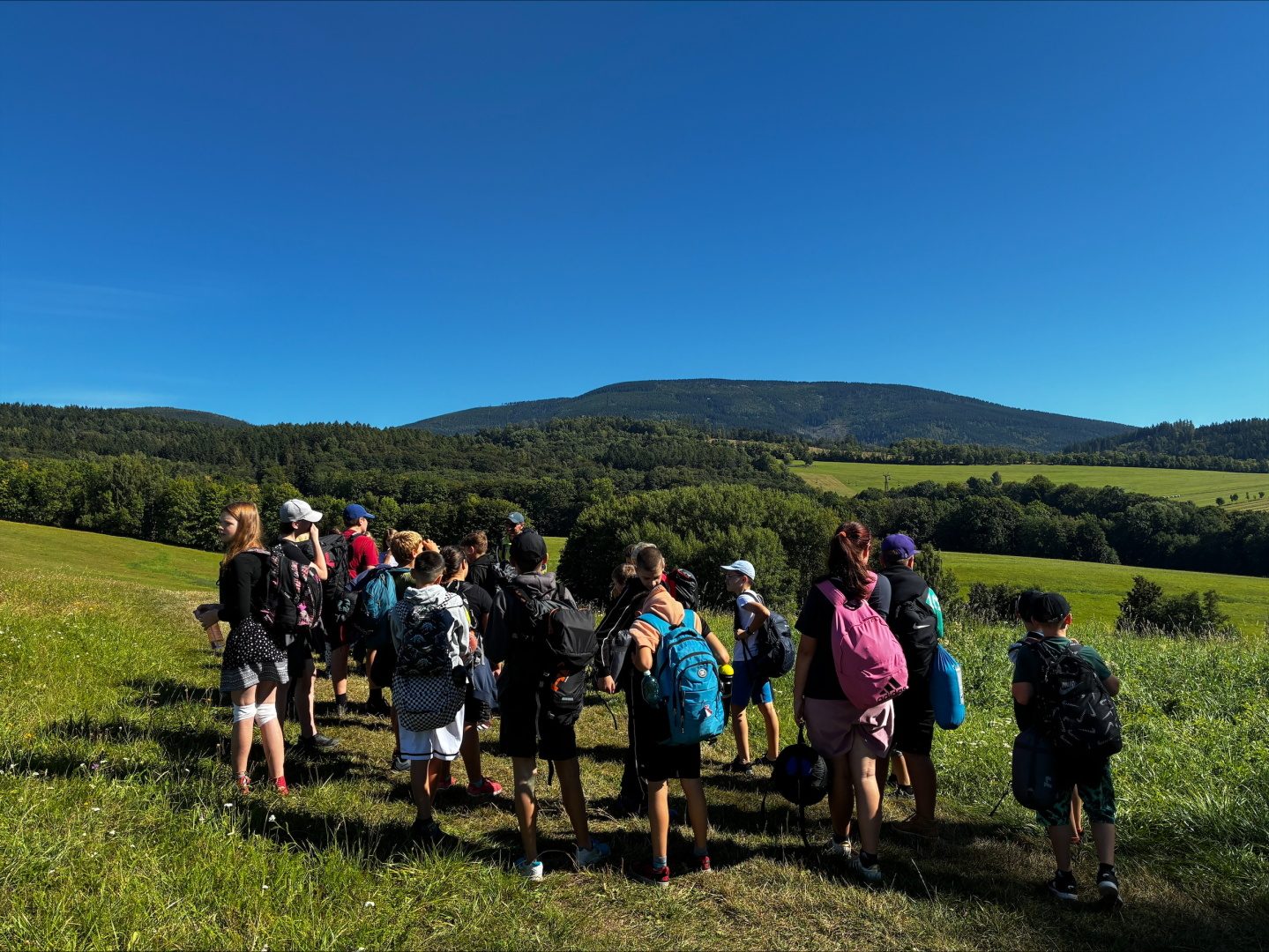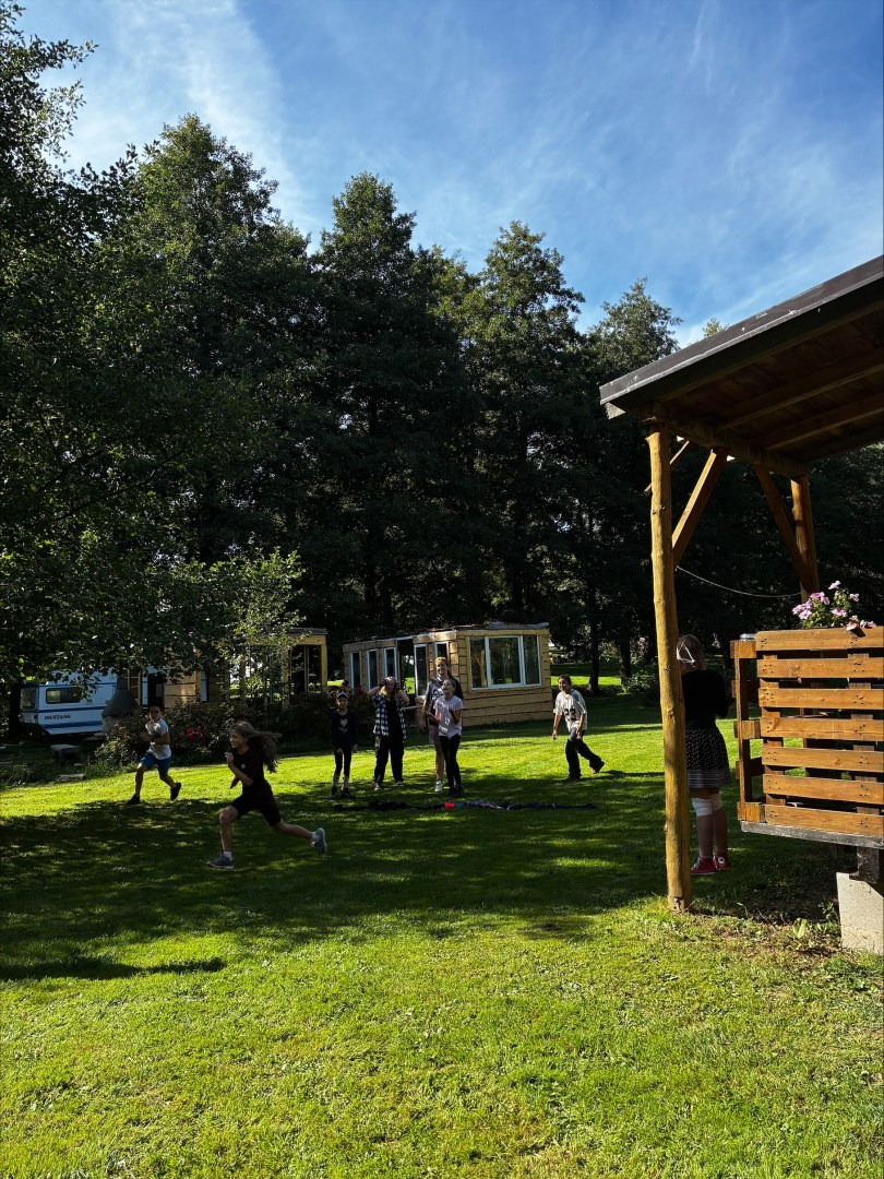 Tři dny ve škole, dva v přírodě, tak měl v novém školním roce vypadat první týden čerstvých šesťáků. I stalo se, původní plán vyšel, ve čtvrtek jsme vyrazili. A bylo nás… hodně. Zaplnili jsme celý autobus vyrážející ze Svobody směrem na Černý Důl. Naší konečnou byla zastávka v Čisté u školy, aby ten ranní start nebyl pro děti tak výrazným šokem. Do kempu to pak odsud bylo stejně daleko jako z mořské hladiny k vraku Titanicu. Počasí nám přálo, modrá část slunečního světla se na molekulách plynných složek atmosféry nádherně rozptylovala. Zvolená trasa v mapě hezky měnila křivost, nešlo odolat. A tak ve společnosti vznášejících se křídel otakárků děti na pouti stezkou sv. Michala statečně zdolávaly jeden inflexní bod za druhým, nedbajíc při tom nad hlavami prolétávajících kusů vápence. Aniž bychom si šáhli na dno, před polednem jsme v pohodě, mentální i fyzické, dorazili do cíle. Následoval krátký odpočinek, ubytování ve čtyřlůžkových chatkách a oběd. Po něm měly děti chvíli pro sebe. Využily ji pro hry a osnování plánů na večer. To vše za zvuků bangerů od pro mě zcela neznámých interpretů.
