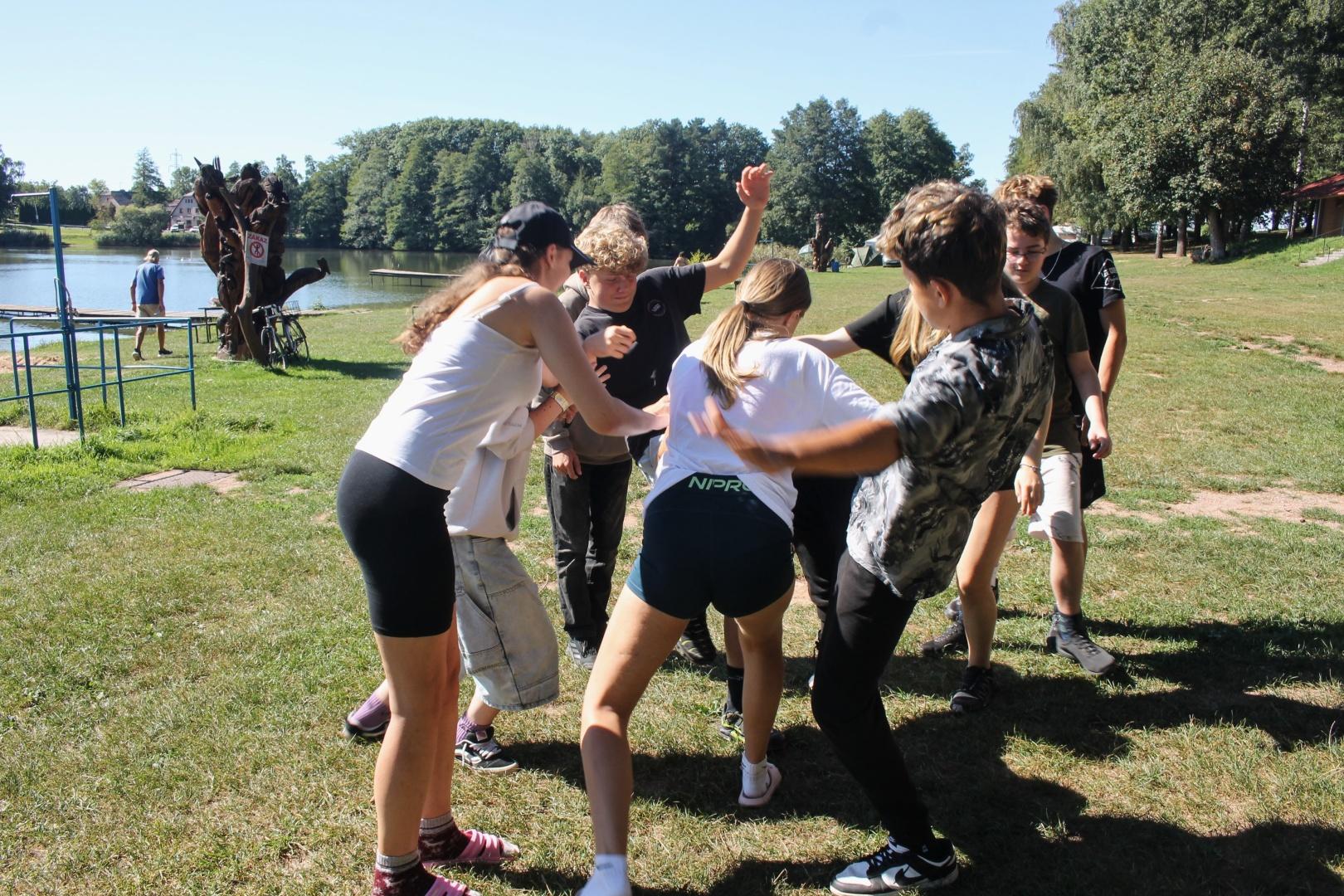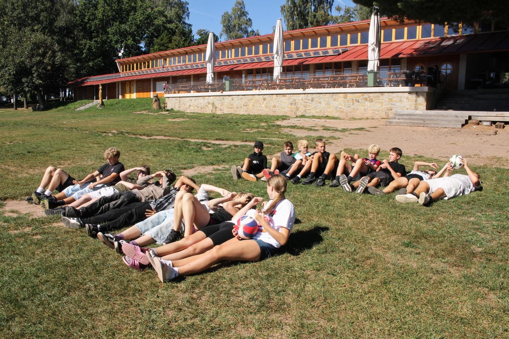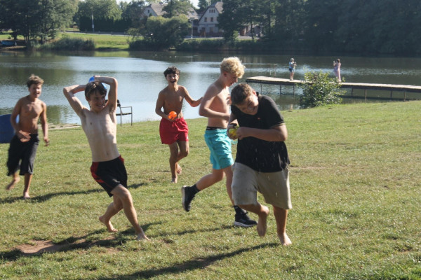 Ráno ještě před snídaní vyrazili někteří ponocující na ranní cca 2 km výběh. Po snídani a úklidu chatek jsme stihli ještě vymyslet a shodnout se na třídních pravidlech, společnou hru na týmy s předáváním míče a nechybělo ani závěrečné koupání. Jen cesta na zpáteční vlak do Červeného Kostelce byla docela náročná.