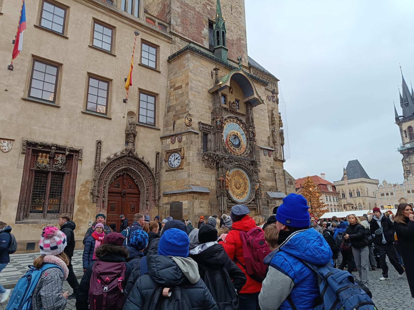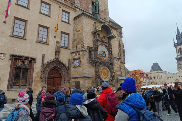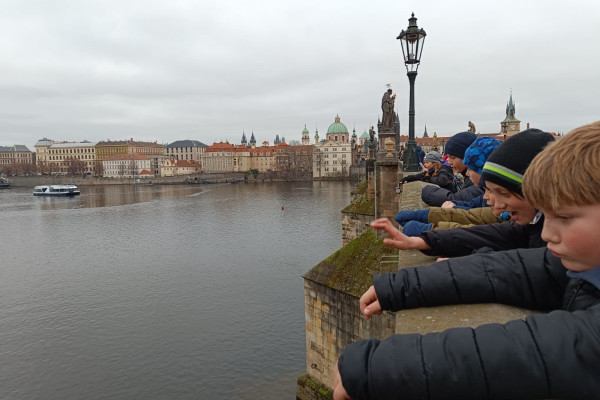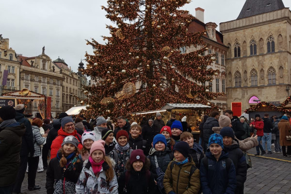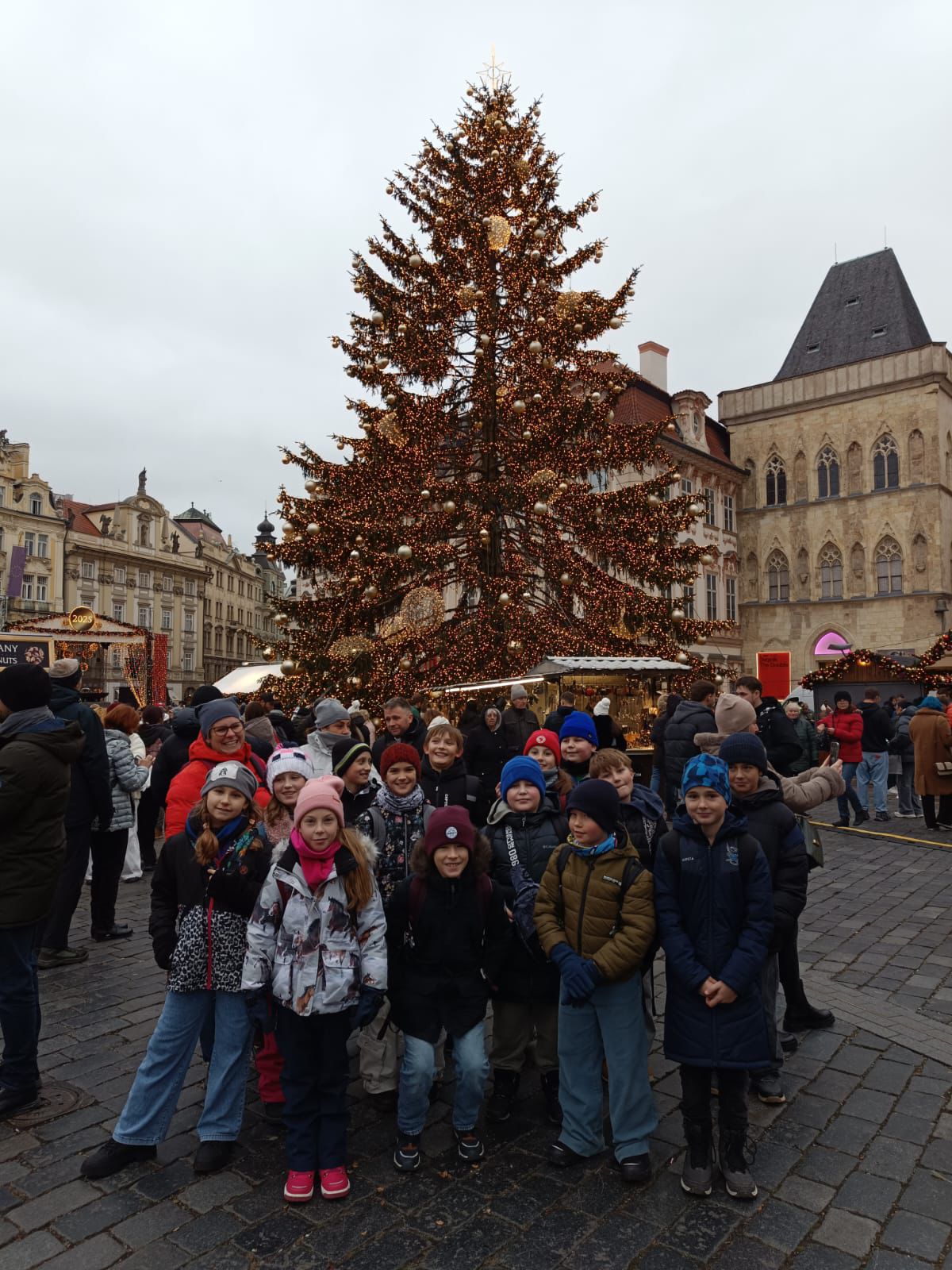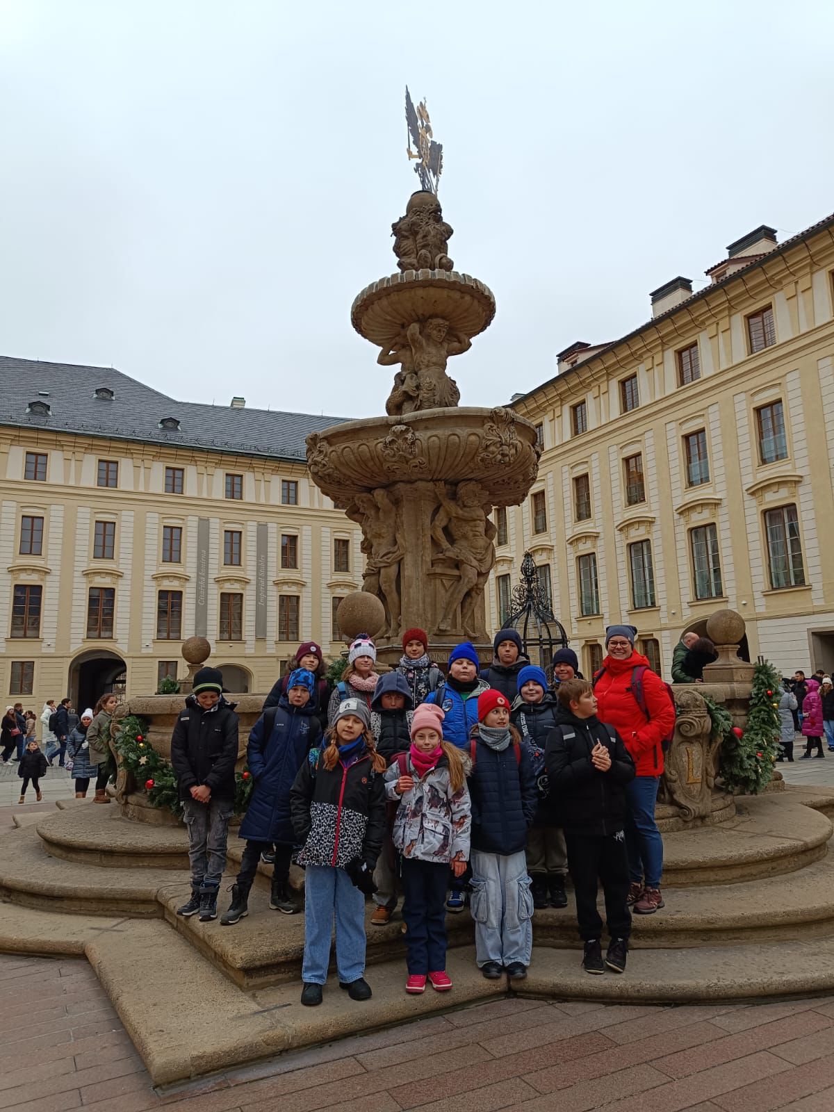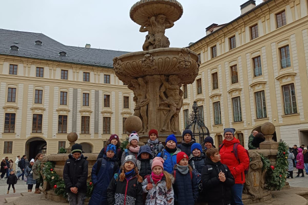 Na začátku prosince jsme se vydali vlakem na jednodenní výlet do Prahy. Z nádraží jsme metrem dojeli na Pražský hrad, kde jsme si nejdříve prošli katedrálu sv. Víta. Odtud jsme přešli na první nádvoří Pražského hradu a počkali si na výměnu stráží, kterou jsme viděli celou. Po ceremoniálu jsme se přesunuli do Zlaté uličky a prošli si její domky i celé prostředí. Z Hradu jsme potom sešli pěšky směrem dolů až ke Karlovu mostu, kde jsme se na chvíli zastavili. Pokračovali jsme na Staroměstské náměstí. Dorazili jsme přesně v celou, takže jsme viděli orloj v pohybu. Prohlédli jsme si náměstí i vánoční strom a všichni jsme ochutnali pečené kaštany. Na závěr jsme došli na Václavské náměstí a odtud se vrátili na vlak. Výlet proběhl v klidu a žáci si domů odvezli spoustu zážitků.
