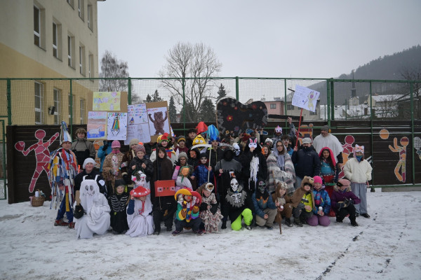 Veškerá snaha vyústila ve veselý masopustní průvod městem, při kterém jsme navštívili školní jídelnu, městský úřad i místní obchody a předvedli se také dětem v mateřské škole a klientům domu s pečovatelskou službou. Vykoledovali jsme si sladkou odměnu pro všechny zúčastněné děti.