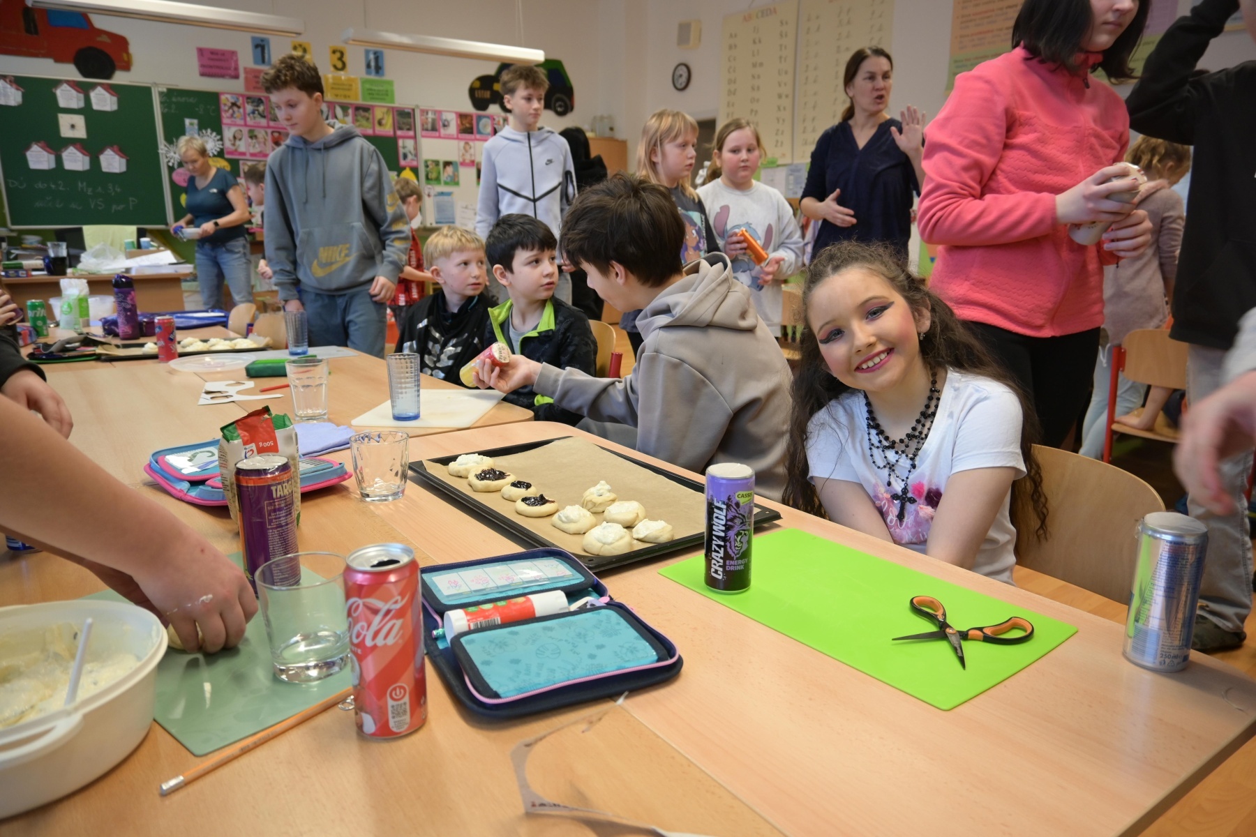 V pondělí 16. února se ve škole sešly partnerské třídy ke společnému tvoření na téma masopust. Žáci zjišťovali k tomuto tématu informace, s pomocí AI psali žádost o povolení průvodu městem, vyráběli plakáty, pekli koláče a tvořili maškary, škrabošky či hudební nástroje, přičemž si k práci i zazpívali. To vše vznikalo v rámci vzájemné spolupráce dětí z 1. stupně s jejich staršími kamarády.