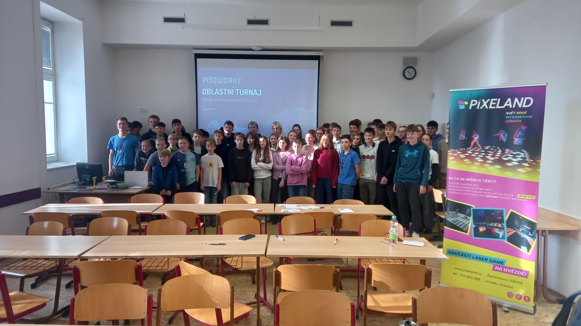 Klára Krčmářová, Klára Štěpová a Barbora Vachková, Jakub Hanuš, Šimon Šír a Matěj Škarda, ti všichni nás letos vyrazili reprezentovat na oblastní turnaj v pIšQworkách. Jeli vlakem (jako vloni), do Trutnova (jako vloni), na průmyslovku (jako vloni). Dívky v jednom týmu, chlapci v druhém. Svoboda 1 a Svoboda 2. Hezky to při vyhlašování jednotlivých utkání znělo.