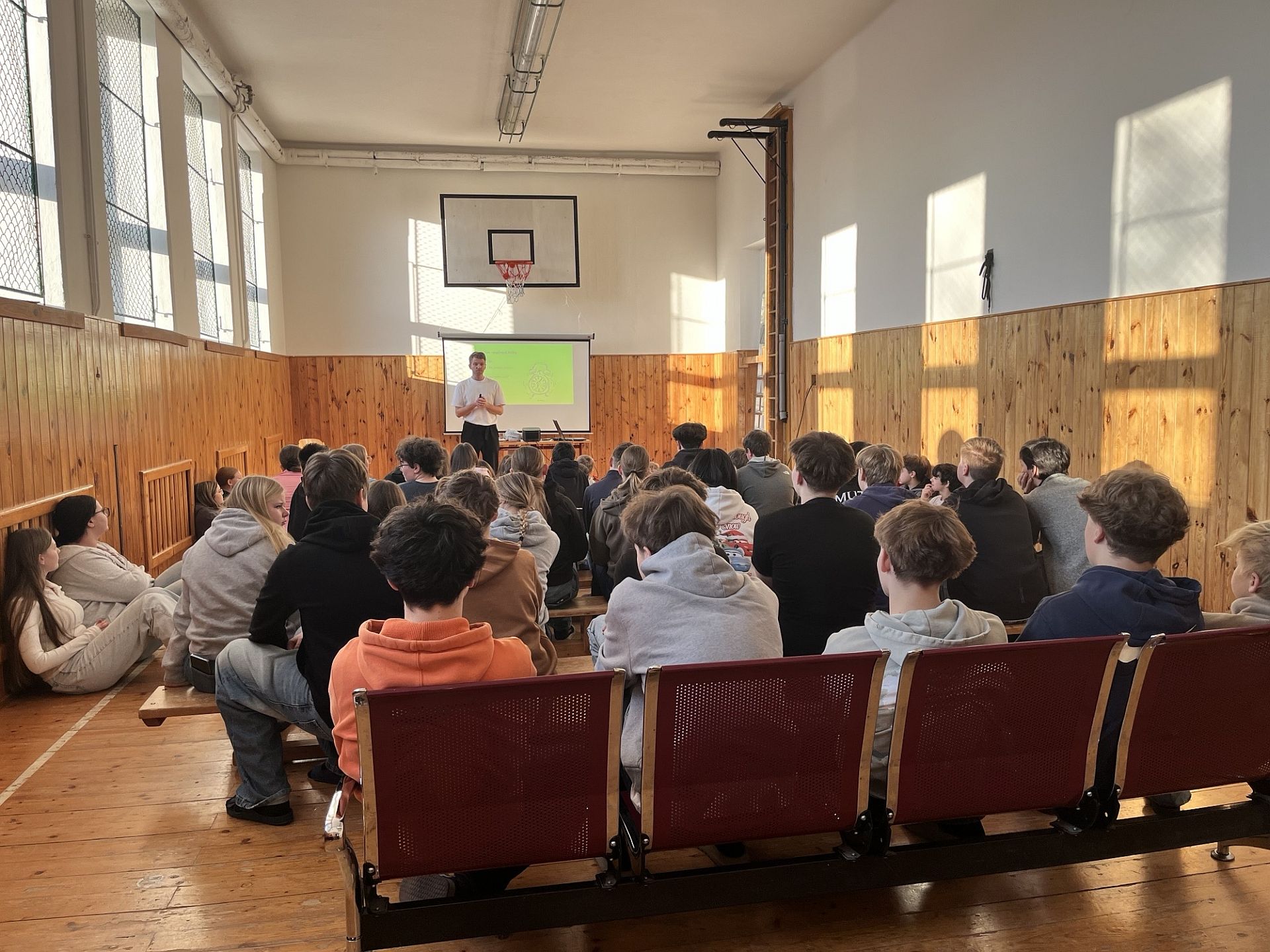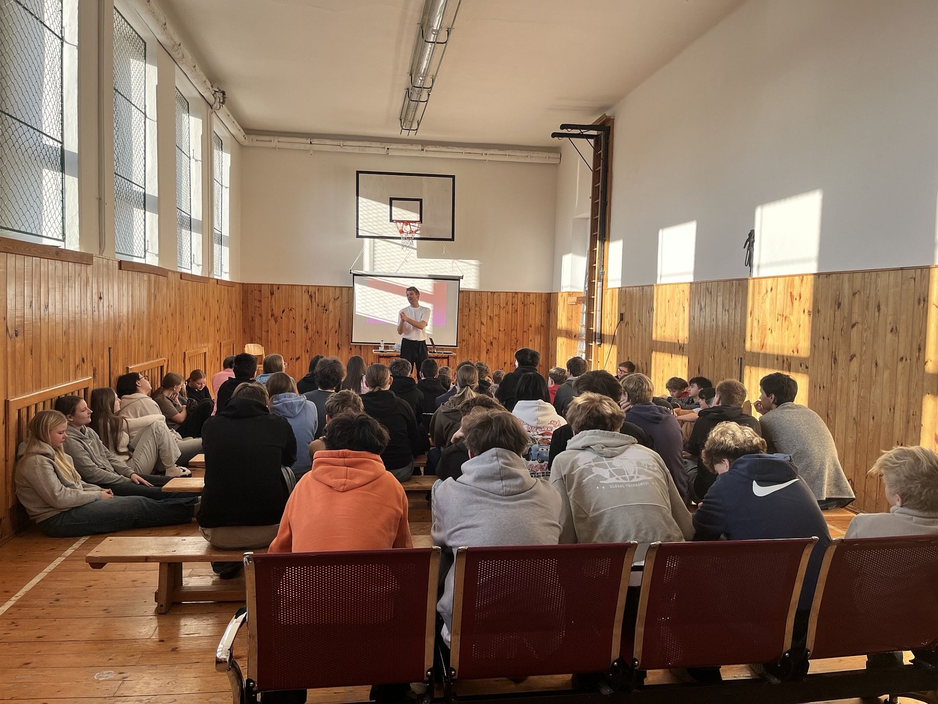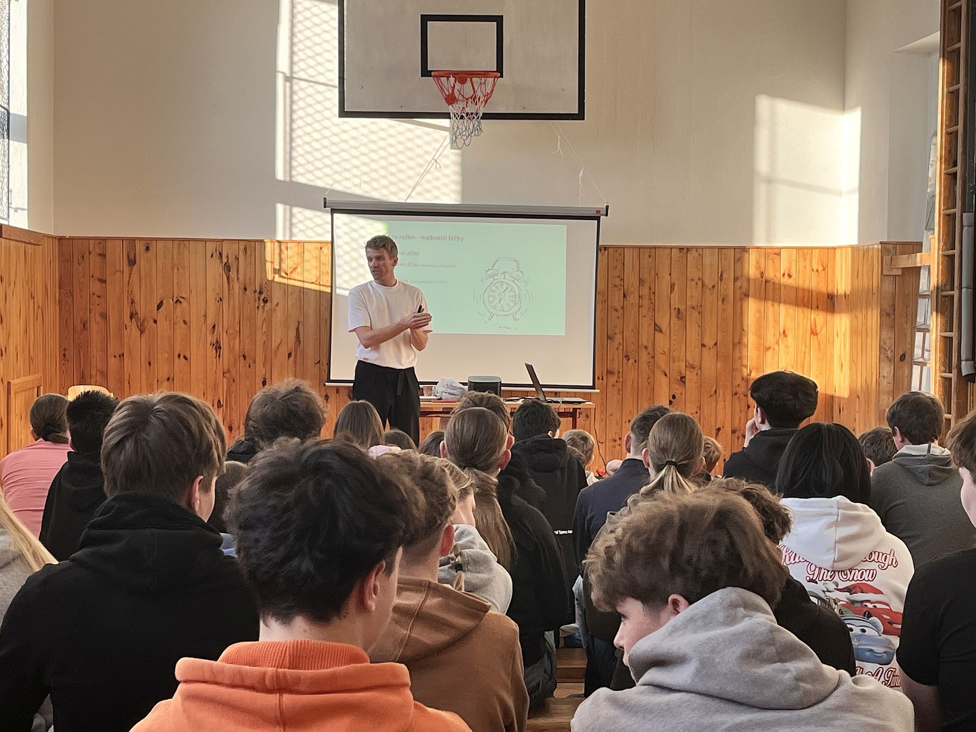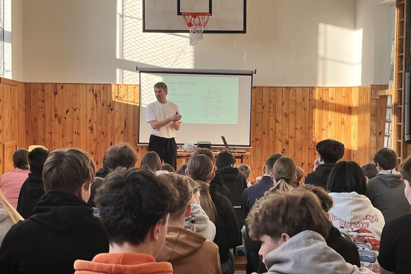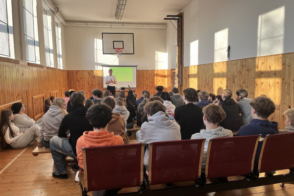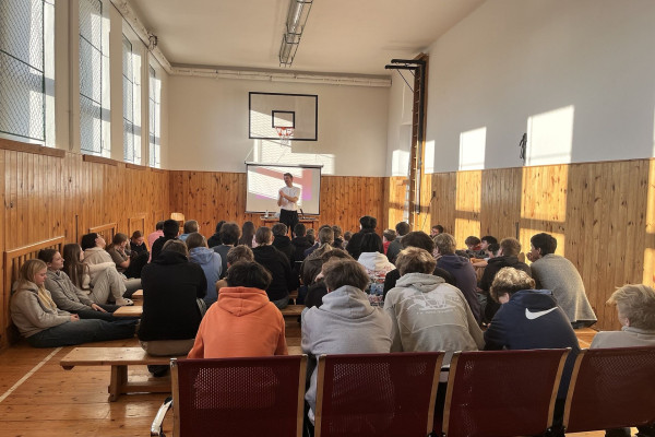 V pondělí 19. ledna 2026 se na naší škole uskutečnila zajímavá beseda s panem Petrem Harazinem. Pro mnohé účastníky šlo na začátek besedy nejspíše o neznámého člověka, ale v jejím průběhu mohli zjistit, že před nimi se zajímavým tématem stanul frontman kapely Nebe, známý český hudebník, spoluautor známé písně Karla Gotta, ,,Srdce nehasnou“ nebo ambasador projektu ,,Suchej únor“.