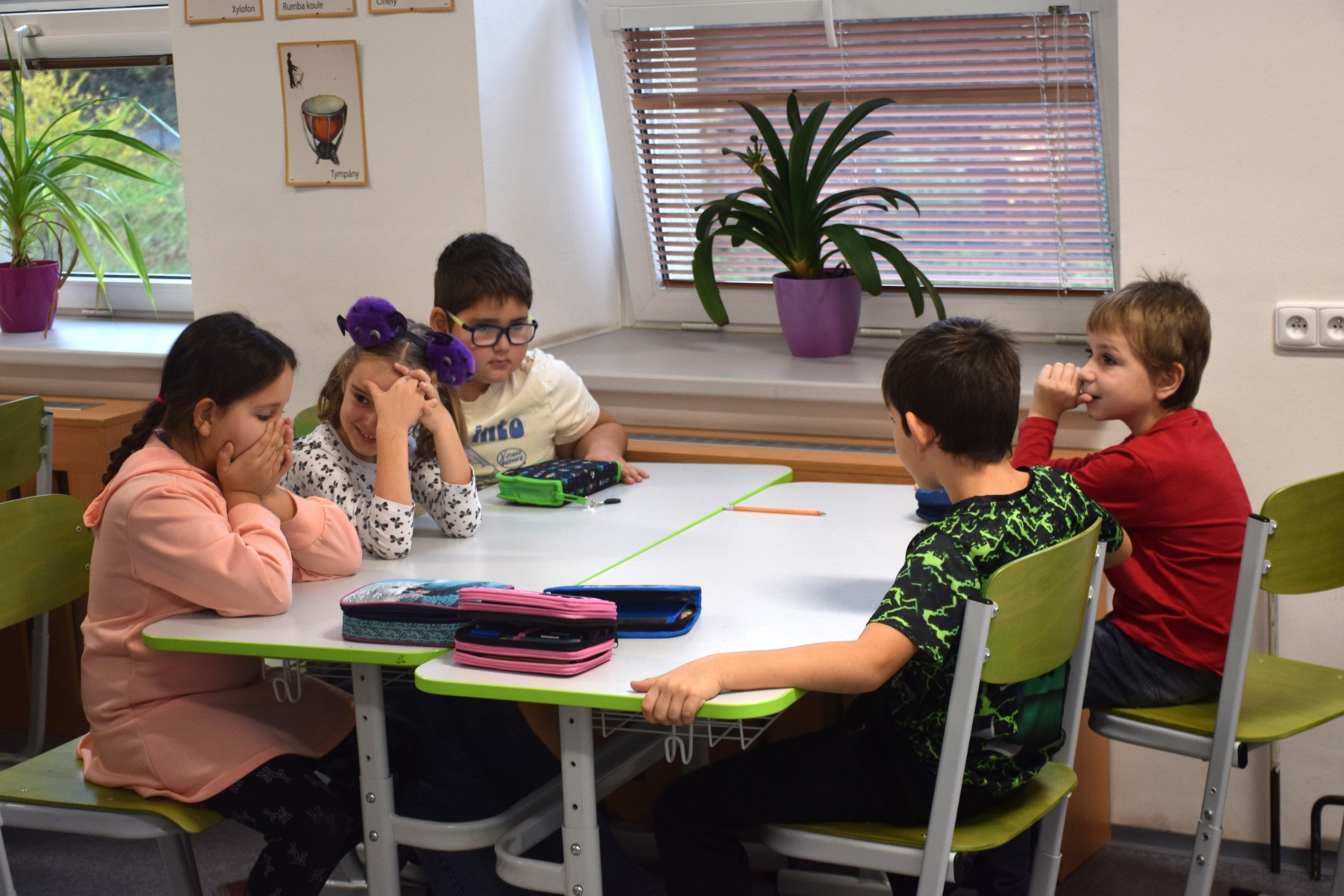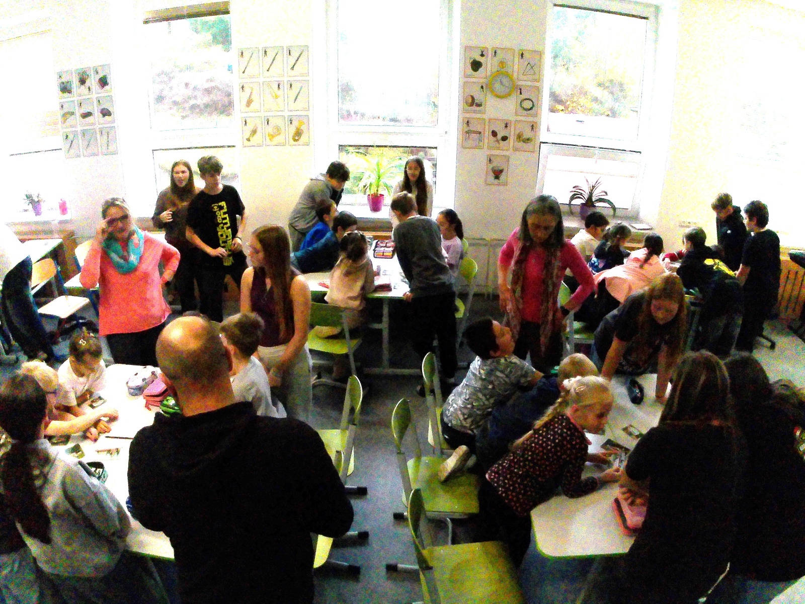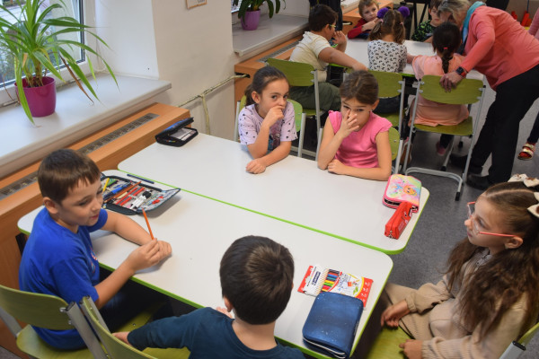 V úvodní vyučovací hodině jsme se společně seznámili v kmenové třídě 4. A, kde pro nás celý projektový den probíhal. Naše 8. B si pro mladší spolužáky ze 4. A připravila řadu aktivit: úvodní představení se, přesmyčky slov, hru „na krále“ a v závěru úvodní seznamovací hodiny jsme se prostřídali a zahráli jsme si pantomimu.