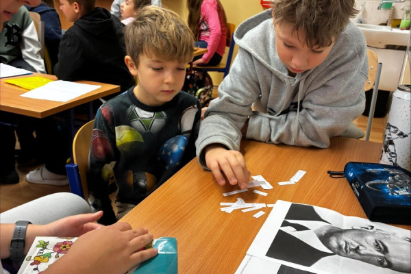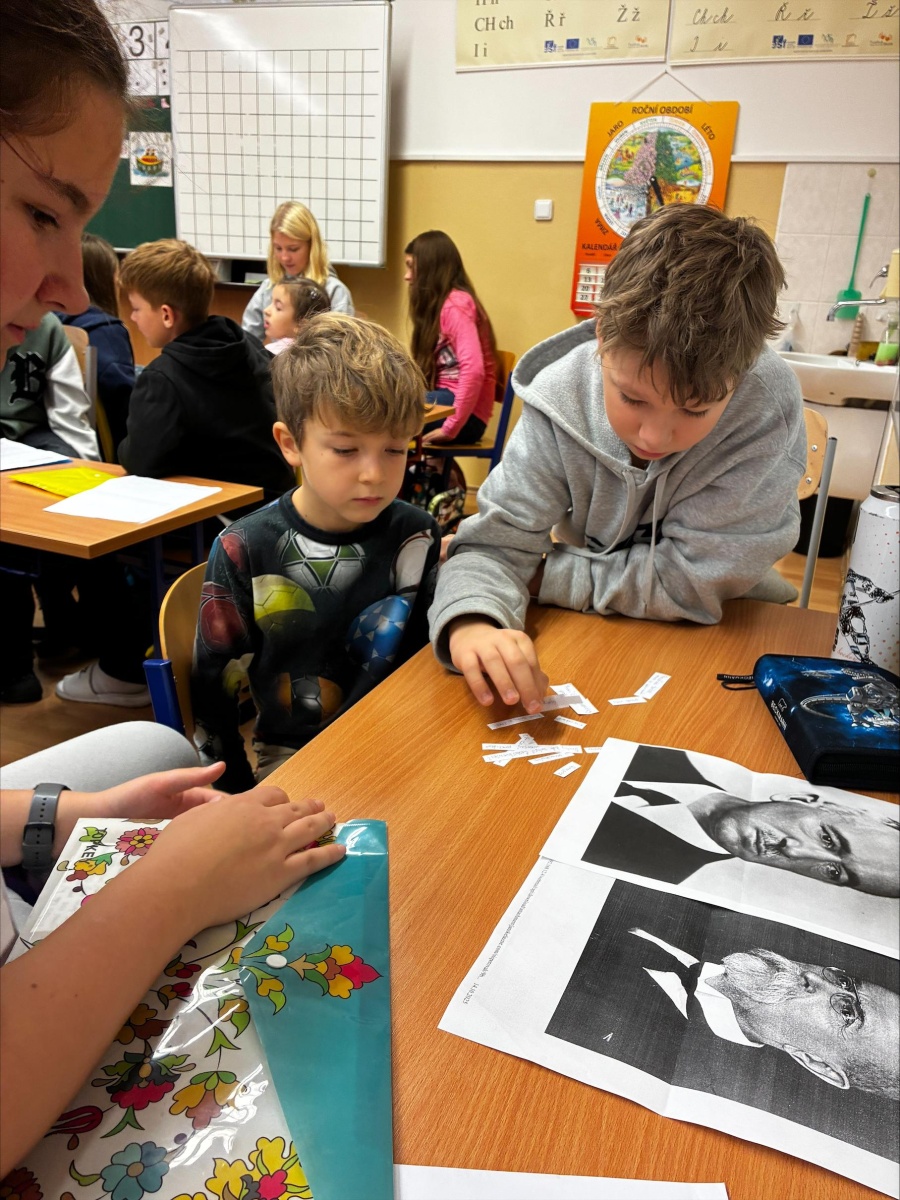 Dne 30. října jsme si pro třetí třídu připravili různé aktivity ke vzniku Československa. Děti v průběhu dne vyplňovaly pracovní listy, naučily se jména československých i českých prezidentů, společně jsme si zazpívali českou hymnu a řekli si, kdo ji napsal, složil a v jakém roce vznikla. Dále si děti poskládaly velký státní znak, doplnily křížovku, a dokonce si zahrály i Kahoot. Za každou aktivitu vždy získaly jedno z čísel, podle kterých museli nakonec poskládat kód k odemčení pokladu, ve kterém je čekaly sladká odměna a placka s T. G. Masarykem. Myslím si, že jsme si projektový den užili i my i třeťáci.