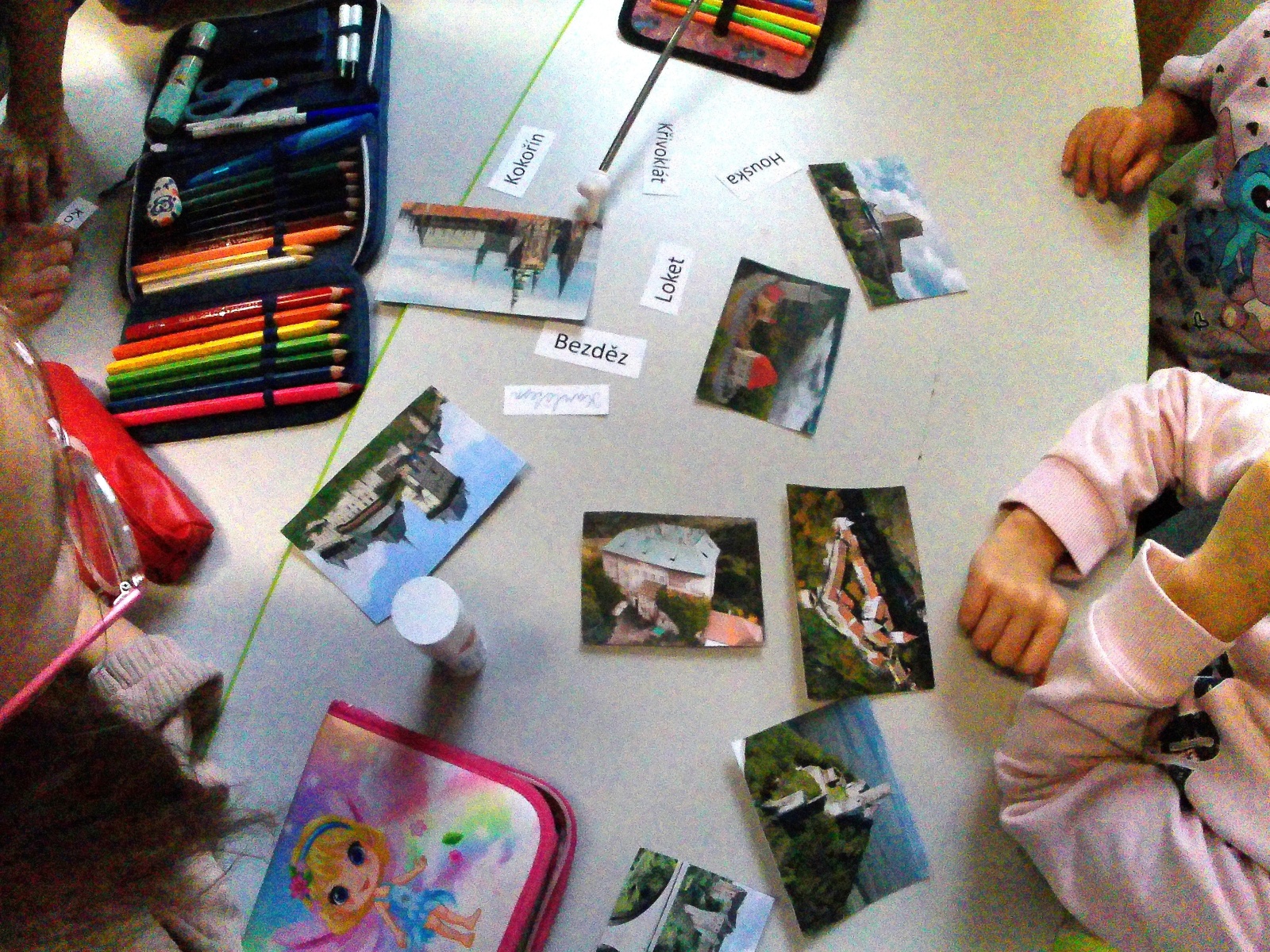 c) stanoviště, kde měli žáci za úkol správně poskládat slova naší hymny a naučit se je ke společné recitaci či zpěvu a nakonec