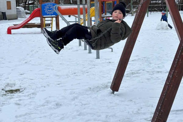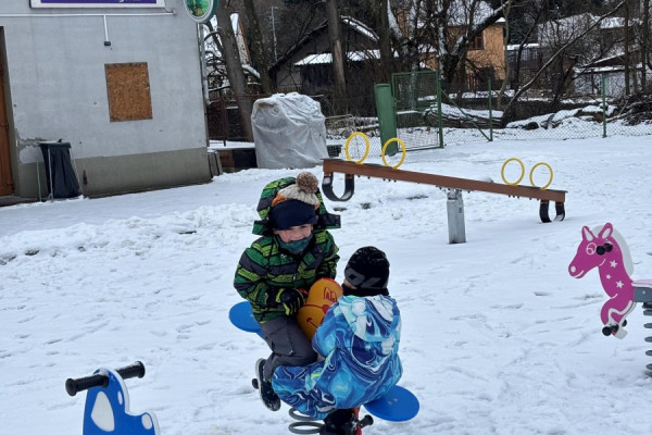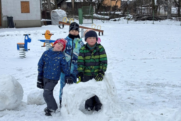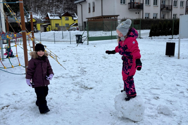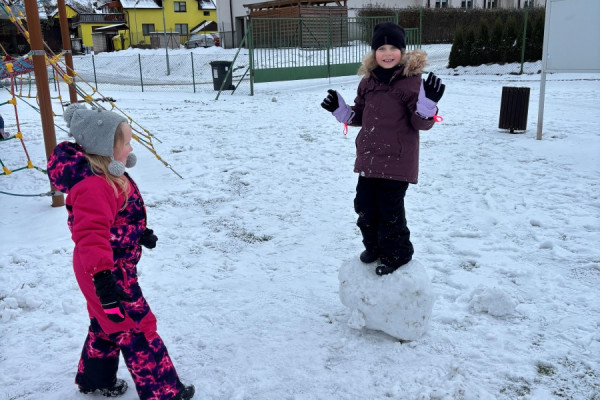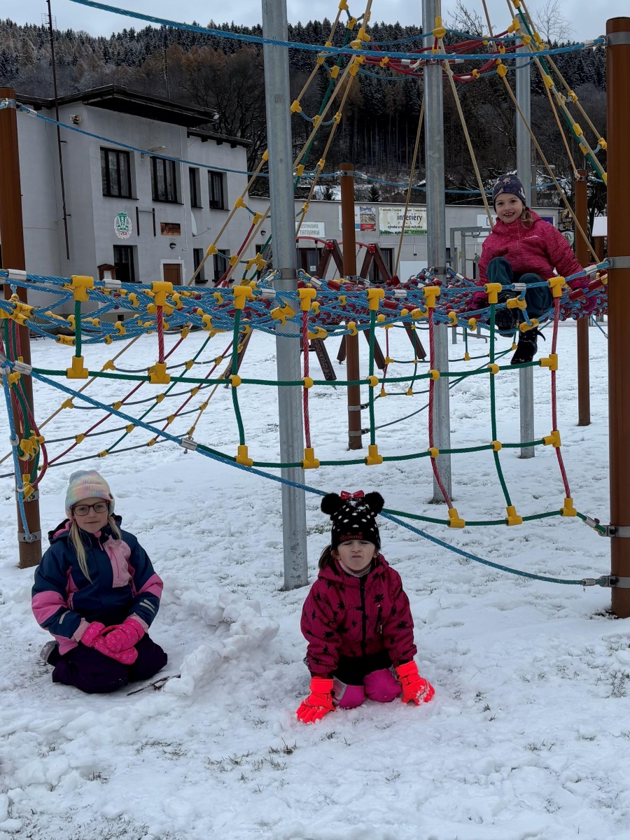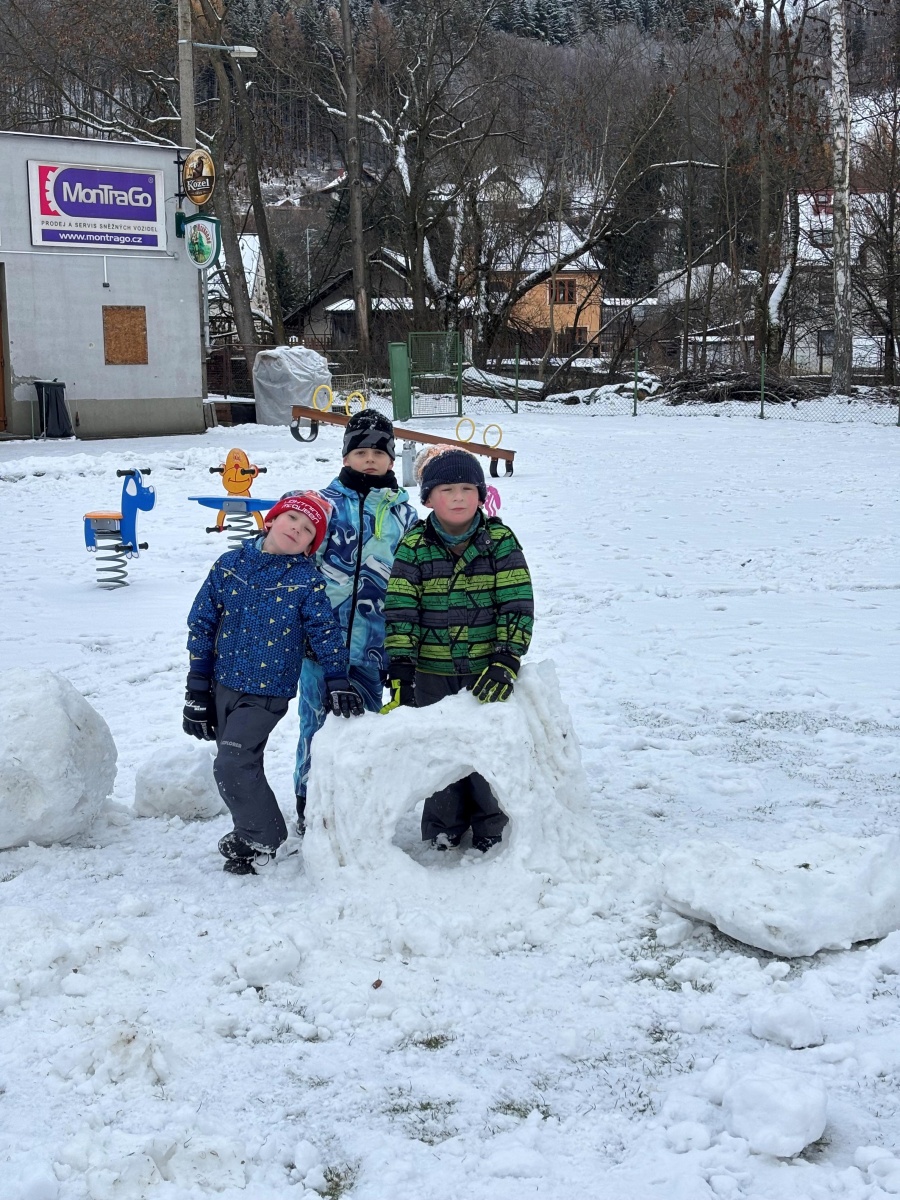 Prvňáčci si při tělocviku v listopadu užili první sněhovou nadílku.