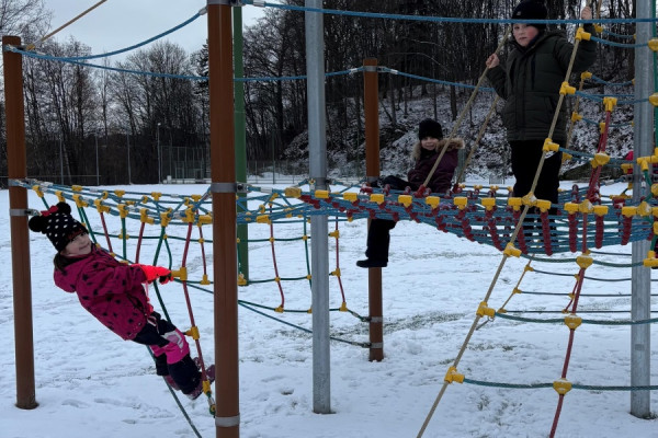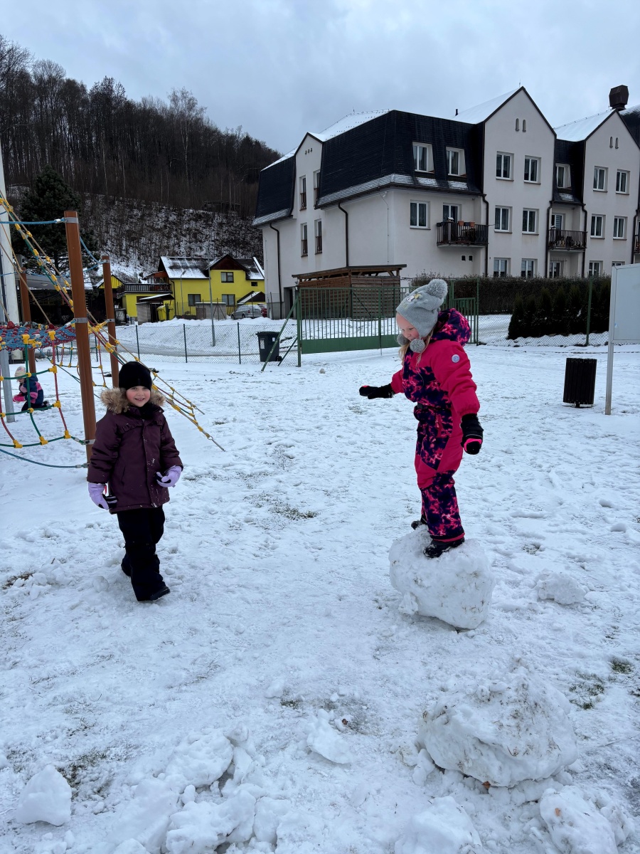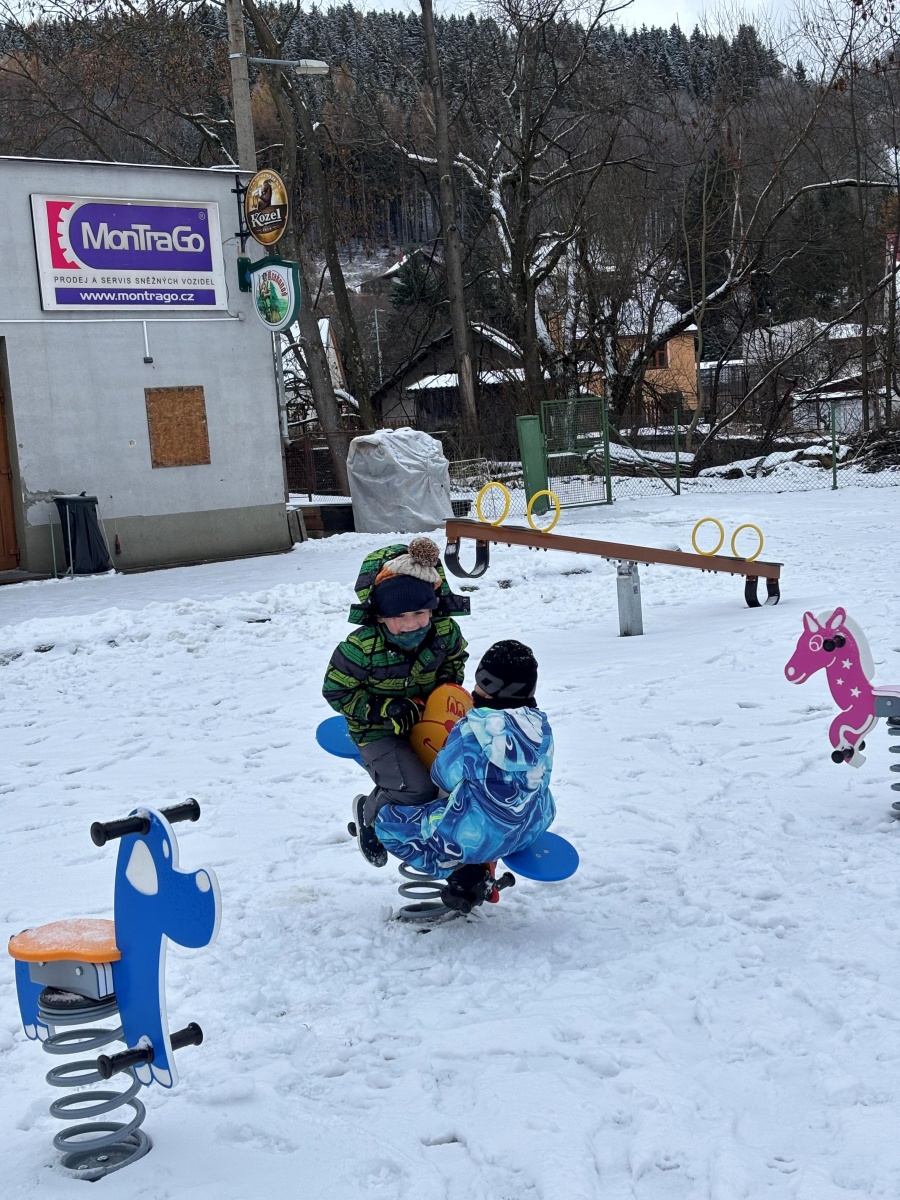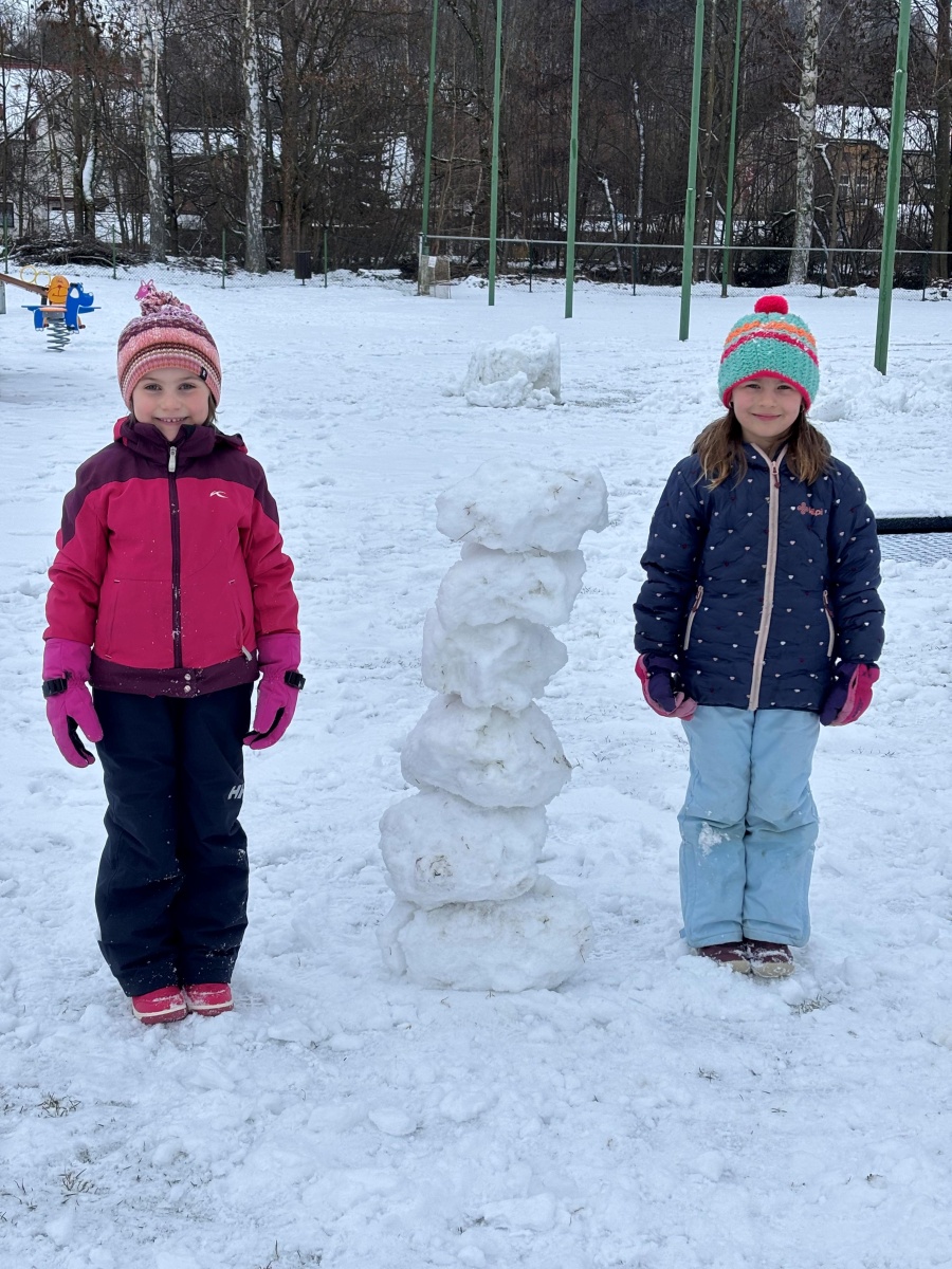 Prvňáčci si při tělocviku v listopadu užili první sněhovou nadílku.