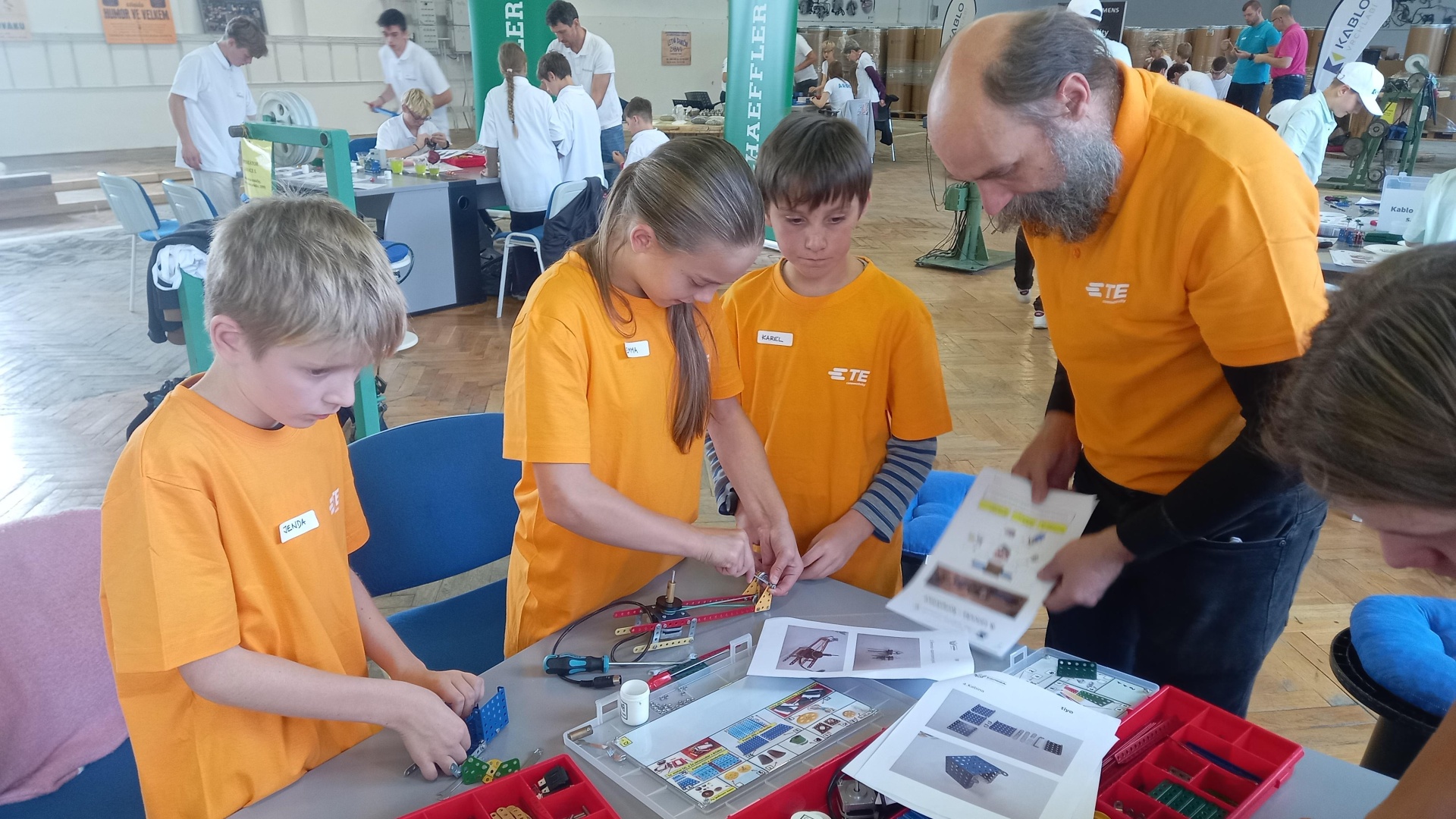 Pro ročník 2025 připravili organizátoři soutěžním týmům dvě zadání: sestavit a zprovoznit lanovku se třemi podpěrnými sloupy a složit vrtulník se dvěma rotujícími vrtulemi. Na oba úkoly měly týmy v souhrnu dvě a půl hodiny. Odborná porota sledovala v průběhu sestavování modelů vzájemnou spolupráci mladších žáků a starších studentů, po vypršení časového limitu pak hodnotila soulad vytvořených modelů se zadávací dokumentací, kvalitu a přesnost montáže a v neposlední řadě funkčnost dokončených zařízení. Po více než hodině posuzování a kontrolování byli všichni přítomní seznámeni s výsledky. Vítězným a postupujícím týmem se stal „Kasper Kovo“ (ZŠ Trutnov Mládežnická a Střední průmyslová škola Trutnov), druhý se umístil tým „Vitesco Technologies“ (ZŠ Podharť Dvůr Králové nad Labem a Střední průmyslová škola a Střední odborná škola Dvůr Králové nad Labem). Náš tým skončil pod vedením pana Ing. Jana Nešněry (TE Connectivity s.r.o.) na krásném čtvrtém místě. Spolu se studenty Střední průmyslové školy Trutnov v něm odvedli kus poctivé práce žáci páté třídy - Emma Hovardová, Karel Homola a Jan Šubrt. Všichni tři si zaslouží velkou pochvalu a poděkování za příkladnou reprezentaci školy. Děkujeme.