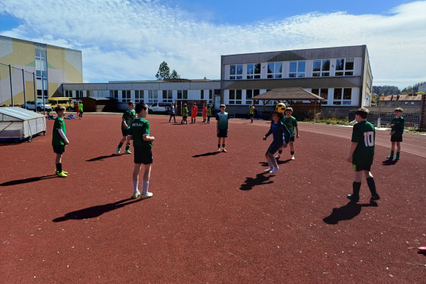 Ve čtvrtek 23. dubna se uskutečnilo na UMT ZŠ V Domcích okrskové kolo turnaje v minikopané určené pro žáky 6. a 7. tříd. Nechyběl u toho ani náš chlapecký tým doplněný i o fotbalisty z 5. třídy. Turnaje se zúčastnilo celkem 6 škol a hrálo se systémem 5+1, každý s každým. Hrací doba jednoho zápasu byla 12 minut.