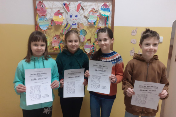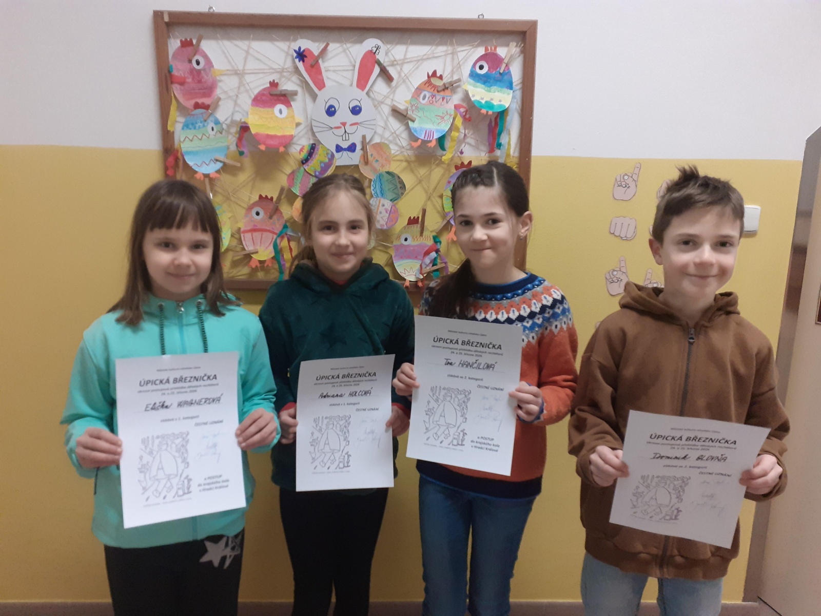 V úterý 24. března 2026 se 4 recitátoři postupující ze školního kola zúčastnili okresního kola recitační soutěže v Úpici. Mezi 17 soutěžícími z 2. - 3. třídy i mezi 16 nejlepšími ze 4. - 5. třídy si vedli opravdu skvěle. Adriana Holcová a Dominik Glovňa si odváží čestné uznání, Eliška Wagnerová a Tea Hančilová se radují z postupu do krajského kola, které se uskuteční 22. dubna 2026 v Hradci Králové.