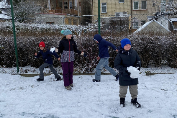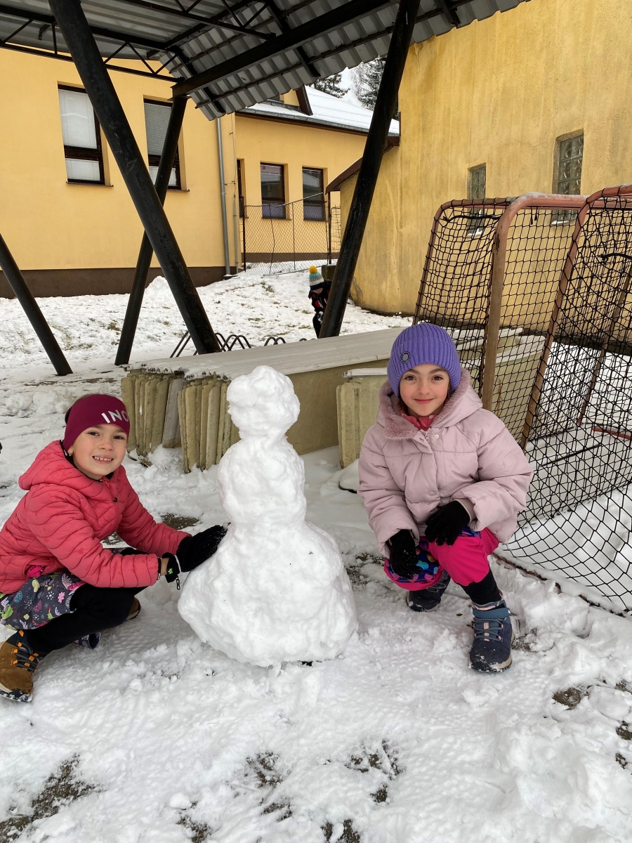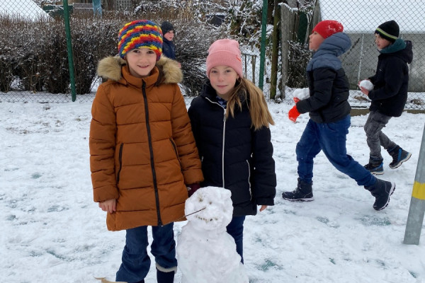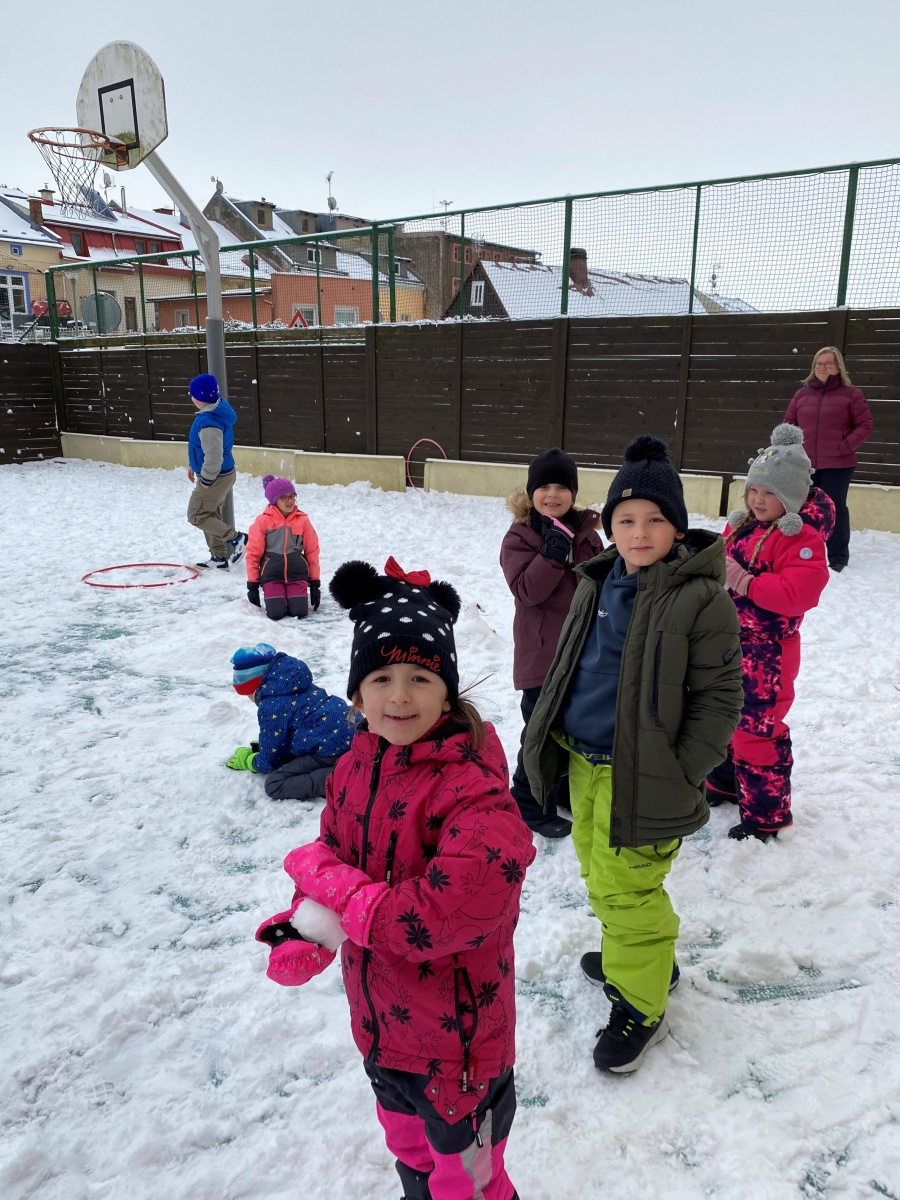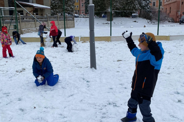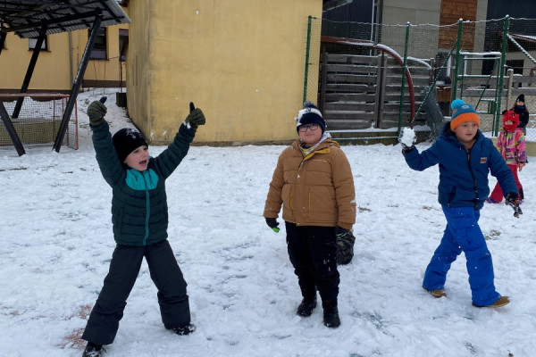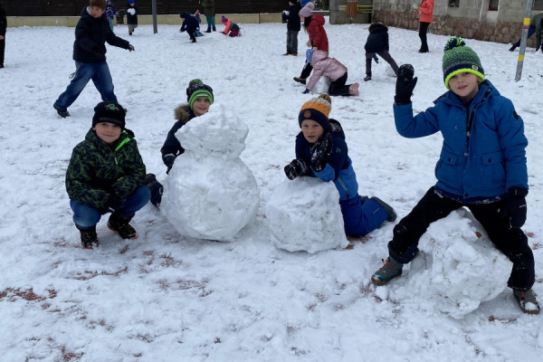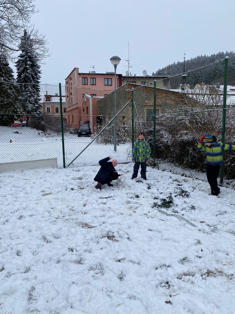 Pokud napadne sníh, tak velká přestávka na školním hřišti je jasnou volbou. Po návratu do třídy jsme sice promrzlí, ale nadmíru spokojení.