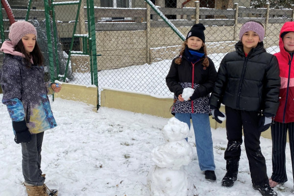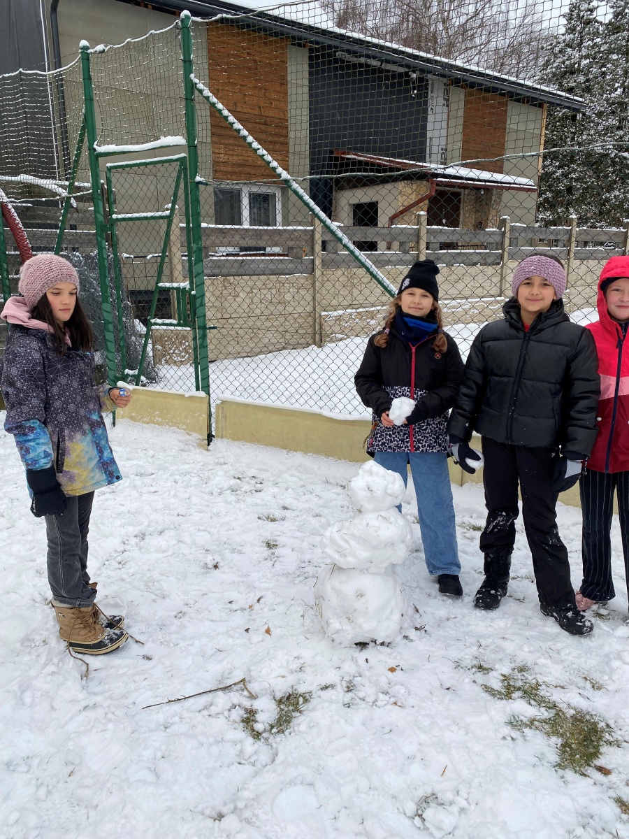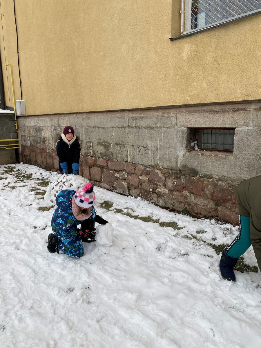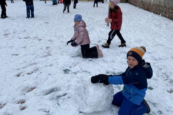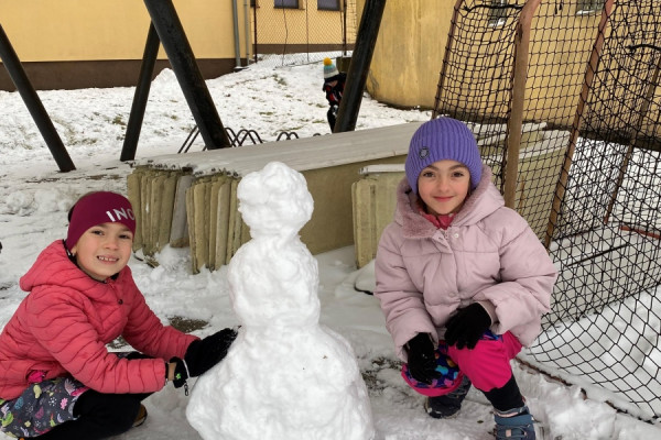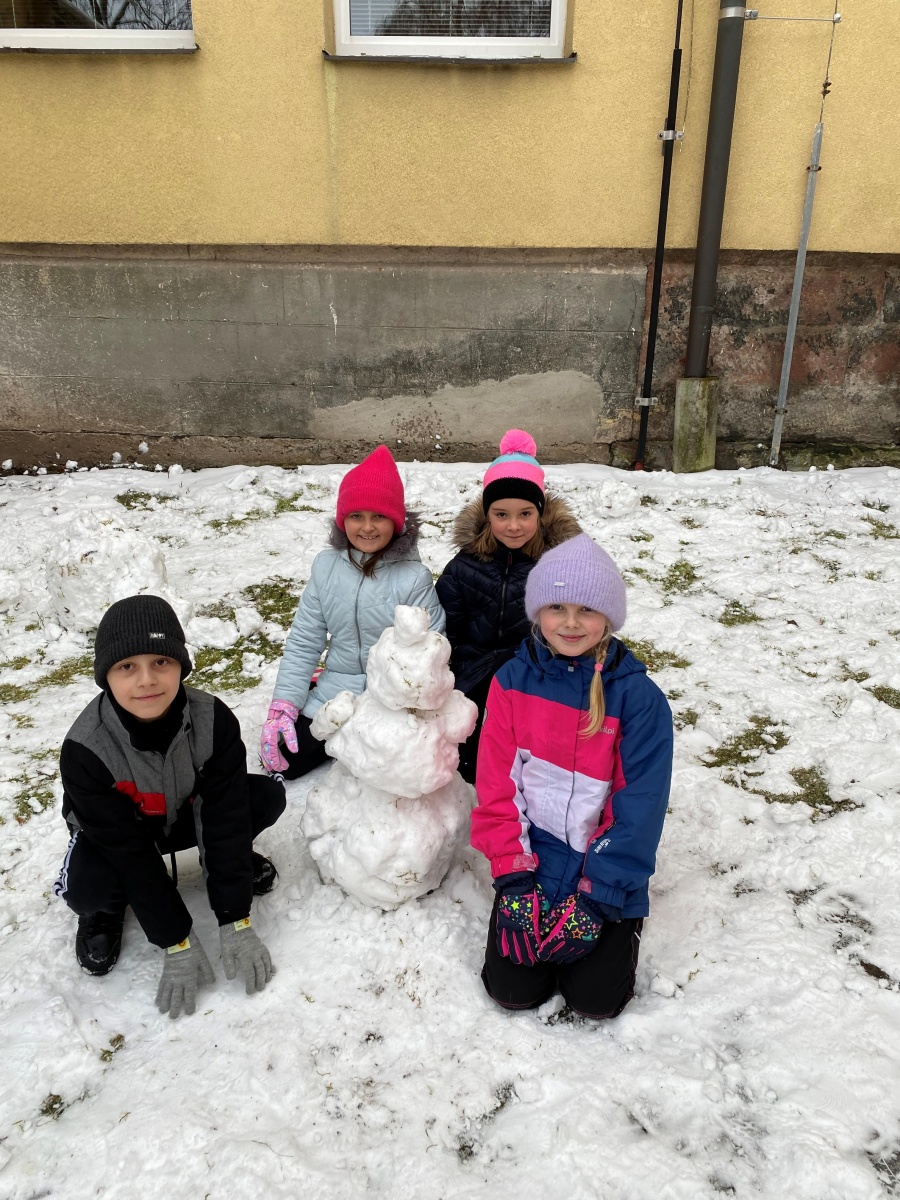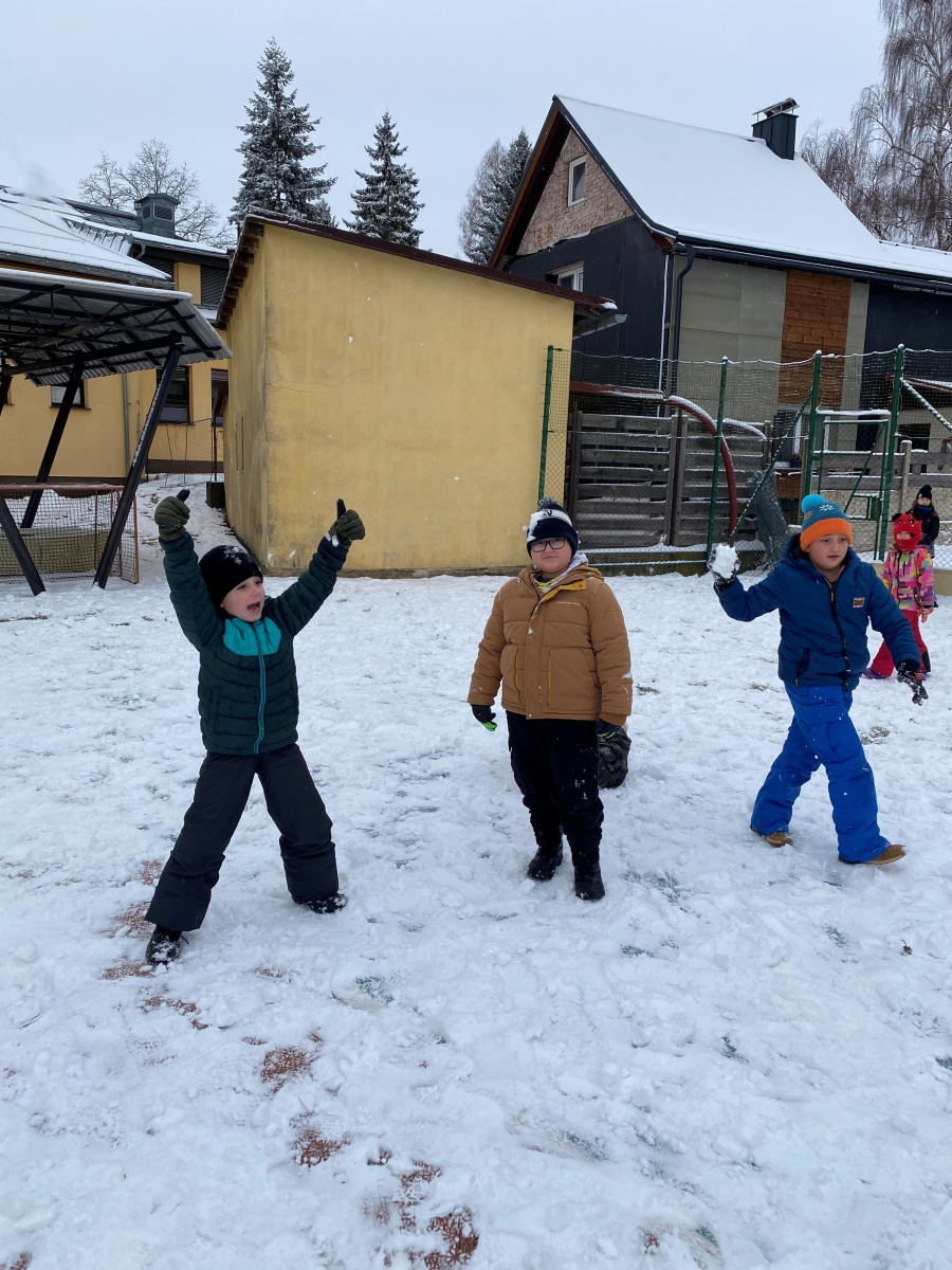 Pokud napadne sníh, tak velká přestávka na školním hřišti je jasnou volbou. Po návratu do třídy jsme sice promrzlí, ale nadmíru spokojení.