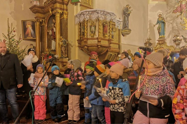 Takřka zaplněný kostel zúčastněných rodičů, prarodičů a přátel školy mohl zhlédnout pásmo básní, koled a vánočních písní v podání dětí z naší mateřské školy a žáků základní školy.