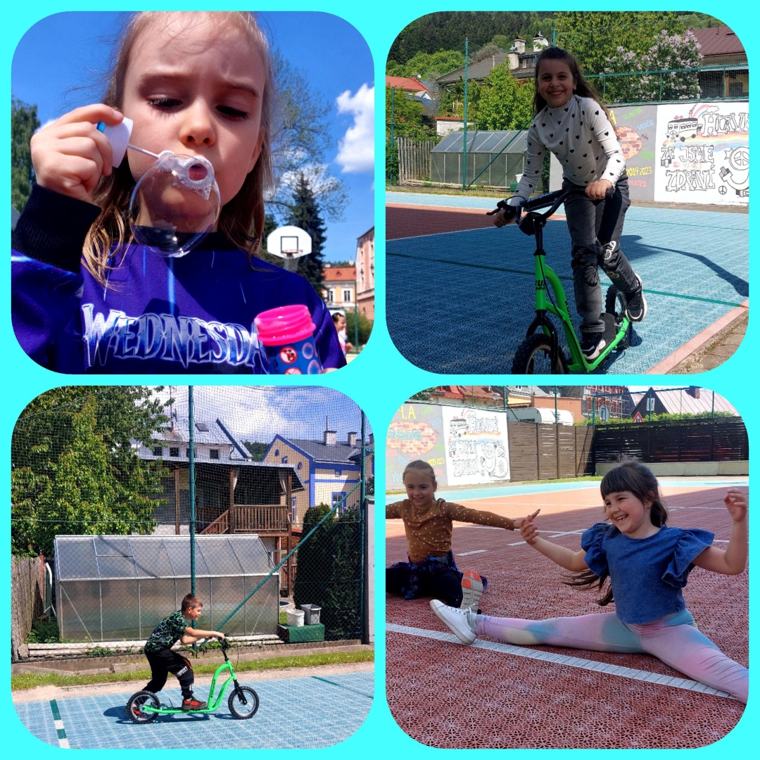 Uplynulý měsíc květen jsme v I. oddělení školní družiny prožili ve znamení Dne her, který jsme si připomněli nejen v knihovně při hrách, které pro nás připravila paní knihovnice Tůmová, ale i týmovou hrou na školní zahradě. Do našeho hraní nám přibyly i dvě nové koloběžky a my za ně moc děkujeme. Kromě Dne včel jsme si připomněli i Den rodin. Celé květnové hraní a tvoření jsme krásně zakončili povídáním o KRNAPu a kreslením Krkonoš tak, jak je vidíme.