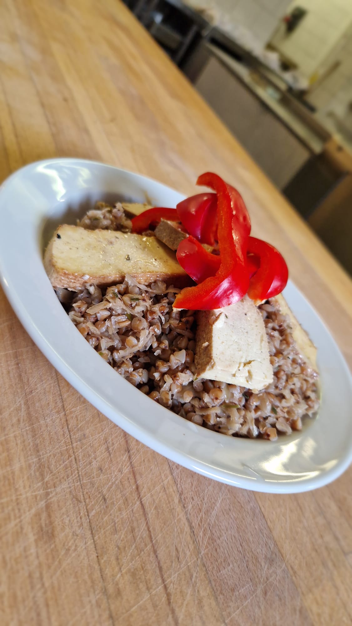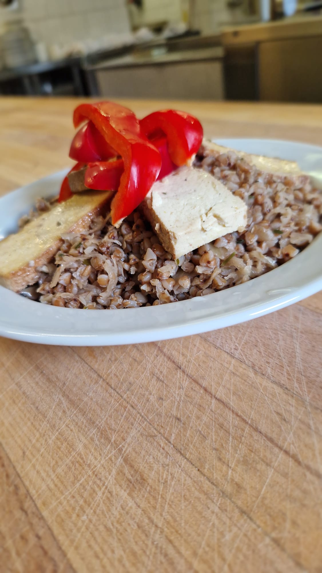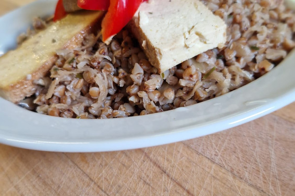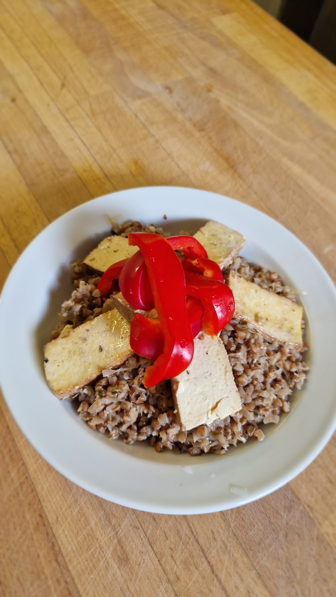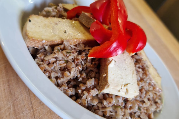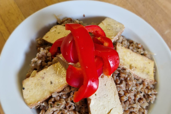 - okořeněné uzené tofu, pečené v troubě na 200 °C po dobu cca 5 minut