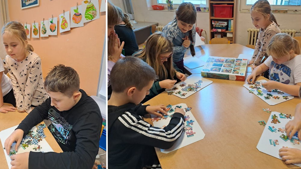Minulý týden se ve II. oddělení školní družiny konala soutěž ve stavění puzzle. Zúčastnit se mohli všichni, kdo měli chuť poměřit své síly a trpělivost — přihlásilo se celkem 20 nadšených soutěžících.